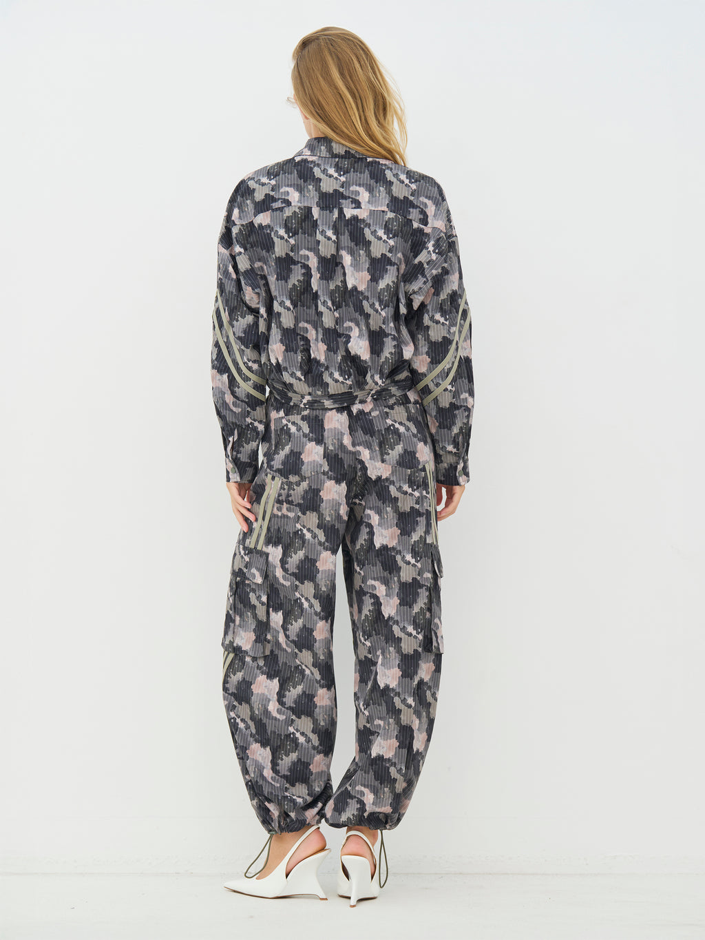 Dieses Hemd hat einen entspannten und etwas rauen Look mit seinem leicht marmorierten Muster und der kurzen Länge. Der klassische Hemdkragen und der Knopfverschluss vorne verleihen ihm ein wiedererkennbares Aussehen, während die markanten Schnitte und Linien auf der Vorderseite und an den Ärmeln Kante und Struktur verleihen. Der Kordelzug am unteren Saum ermöglicht eine Anpassung der Passform und verleiht dem Hemd eine lockere Form. Die Rückseite ist schlicht gehalten und fällt leicht über den Rücken. Kombinieren Sie es mit der passenden Hose für ein abgestimmtes Set oder stylen Sie es mit schlichten Hosen, um die Details der Jacke noch stärker zu betonen. Vorderer Knopfverschluss - Verstellbarer Kordelzug am Saum - Auffällige Schnitte und Linien