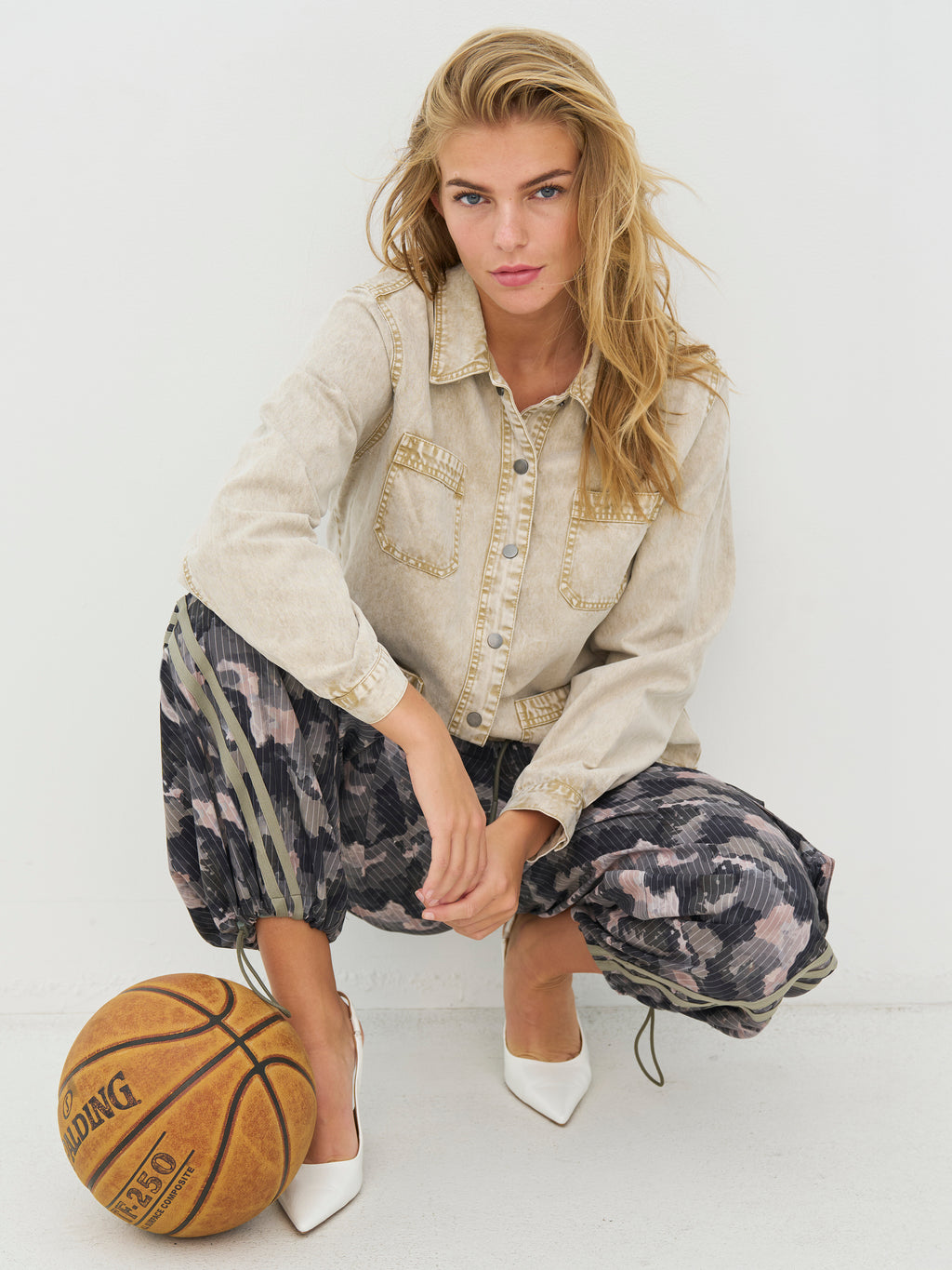 Dieses Denimhemd hat einen rohen und entspannten Ausdruck mit einer geraden Passform, die es im Alltag leicht zu tragen macht. Es ist aus Denim mit einer ungeschliffenen Waschung gefertigt, die dem Stoff Charakter verleiht. Vorne hat das Hemd Druckknöpfe und vier Taschen, die einen funktionalen Look verleihen. Das Rückendesign ist schlicht und fällt entlang des Rückens schön. Tragen Sie es geschlossen wie ein Hemd oder offen als leichte zusätzliche Schicht über einem Top oder Pullover.