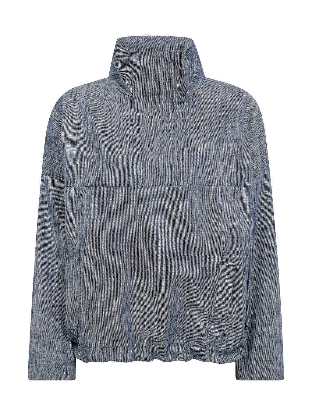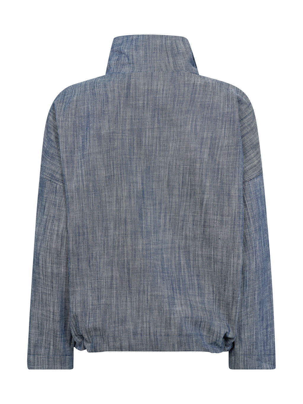 Dieses Oberteil kombiniert ein strukturiertes Material mit einem einfachen, aber raffinierten Design. Es verfügt über einen hohen Kragen mit kurzem Reißverschluss, weite Ärmel und einen leichten, kastigen Schnitt, der eine entspannte und dennoch gut gekleidete Silhouette ergibt. Die Rückseite folgt dem gleichen einfachen Ausdruck wie die Vorderseite und macht es leicht, es über die Jahreszeiten hinweg zu stylen.