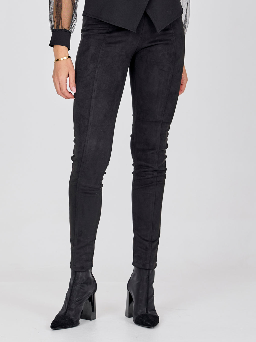 In Wildlederimitat gefertigt, das diesen Leggings einen raffinierten Look verleiht. Diese Leggings bestehen aus einem leicht dehnbaren Material mit einem Elastikbund, wodurch sie den ganzen Tag über einen angenehmen Tragekomfort bieten. Sie können diese Leggings verwenden, um Ihrem Outfit ein schönes Detail zu verleihen, und sie können zu allem gestylt werden – von einem Statement-T-Shirt bis hin zu einem Hemd.