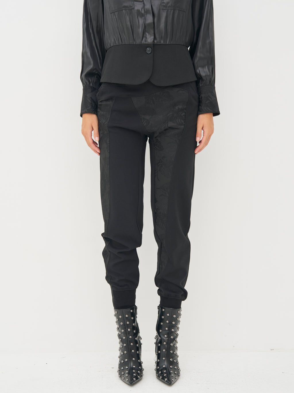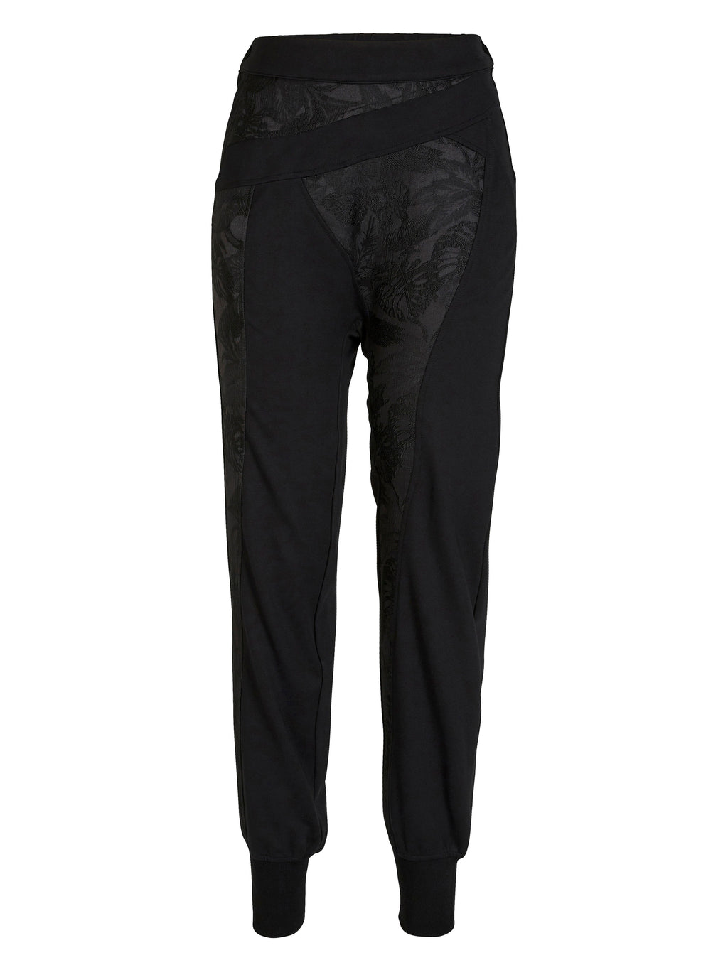 Diese Hose vereint Komfort und Stil mit ihrem weichen Material und dekorativen strukturierten Paneelen auf der Vorderseite. Die Passform ist entspannt mit schmalen gerippten Bündchen an den Knöcheln und einem elastischen Bund hinten für zusätzliche Bewegungsfreiheit. Das schräge Design in der Taille und die unauffälligen Gesäßtaschen vervollständigen den sportlichen Look.