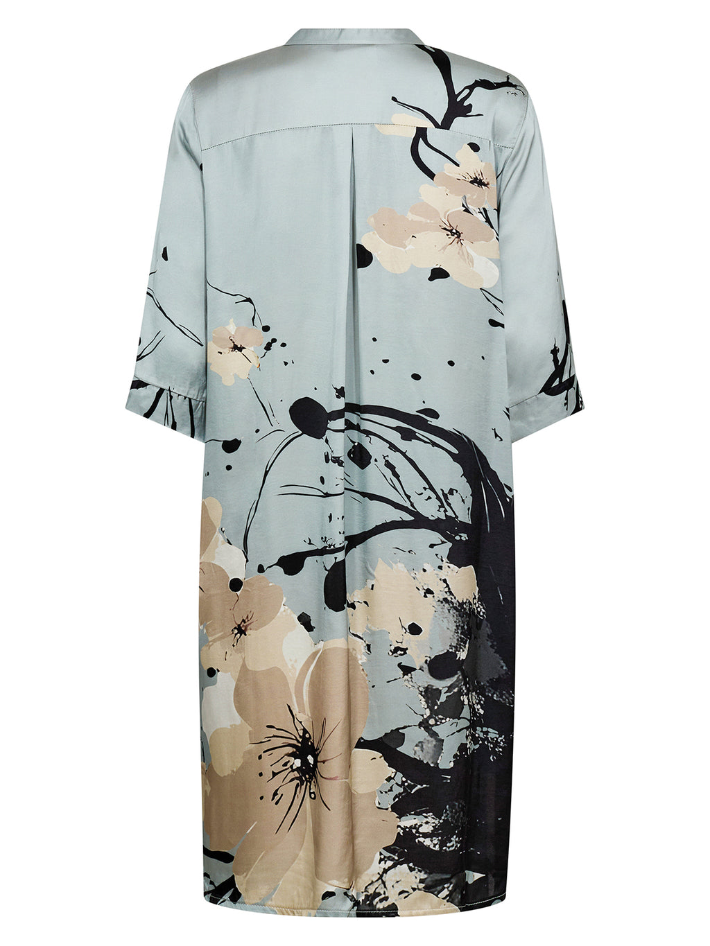 Dieses Tunikakleid hat einen einfachen Schnitt und eine gerade Passform, die leicht und angenehm am Körper liegt. Der offene V-Ausschnitt verleiht einen eleganten Look, während die 3/4-Ärmel Leichtigkeit in das Silhouette bringen.