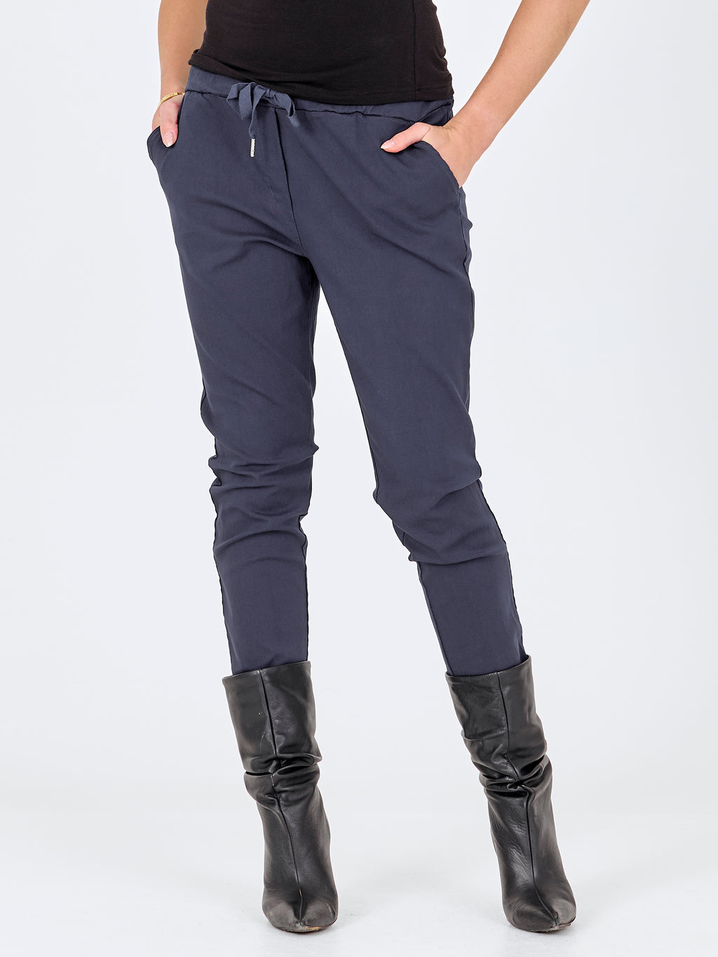- Elastischer Bund und Kordelzug in der Taille.