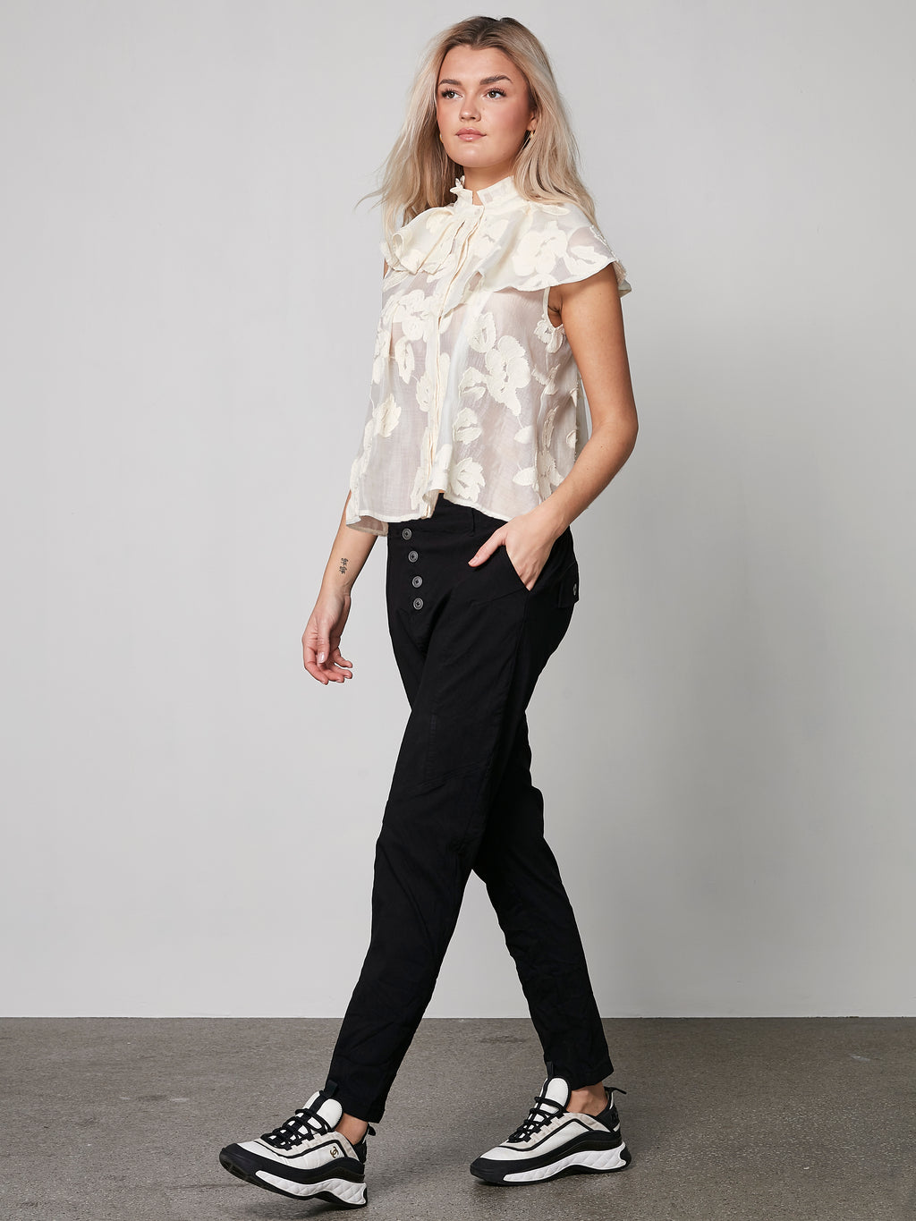 Diese Hose ist perfekt für formelle und lässige Anlässe geeignet. Für einen eleganten Alltagslook empfehlen wir, sie mit einem Hemd und schlichtem Schmuck zu kombinieren. Die Seitentaschen der Hose verleihen ihr eine praktische Note, während der einzigartige vordere Knopfverschluss eine moderne Note hinzufügt.