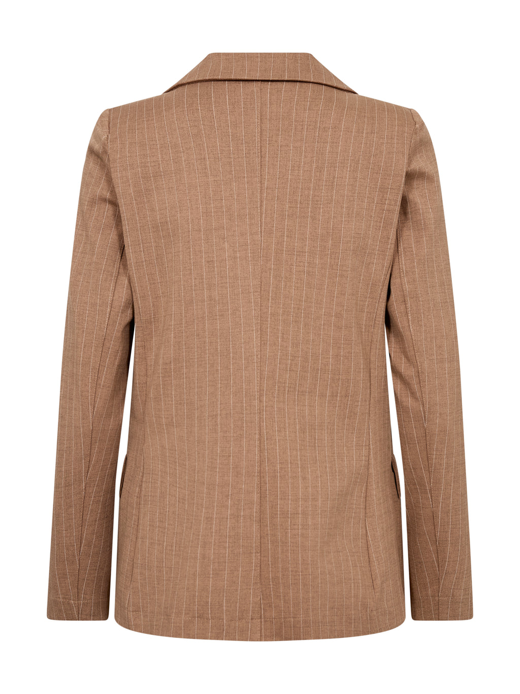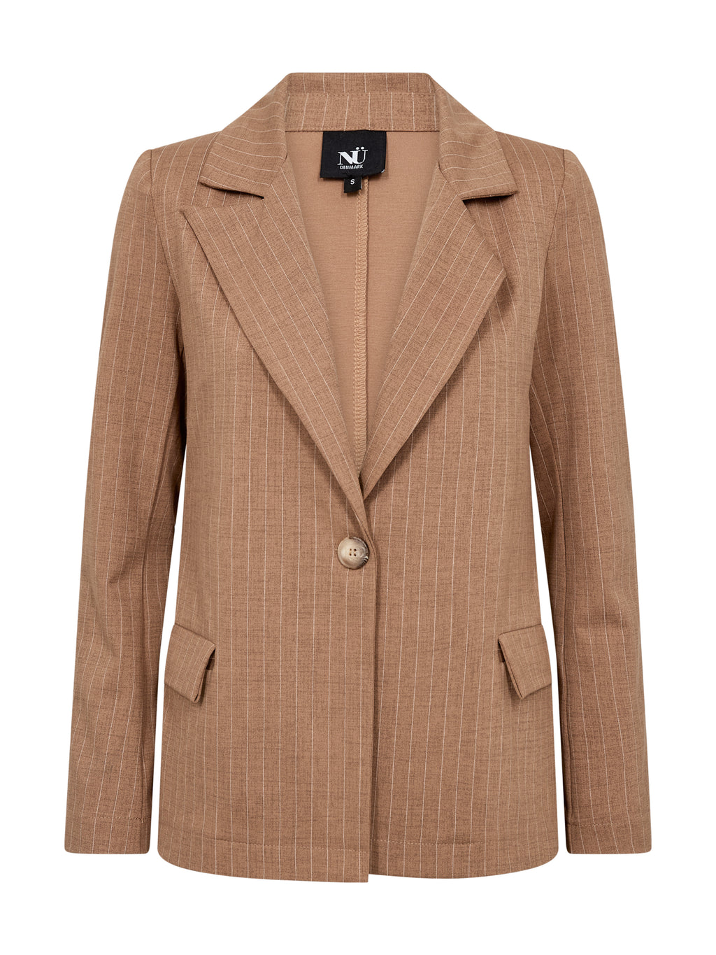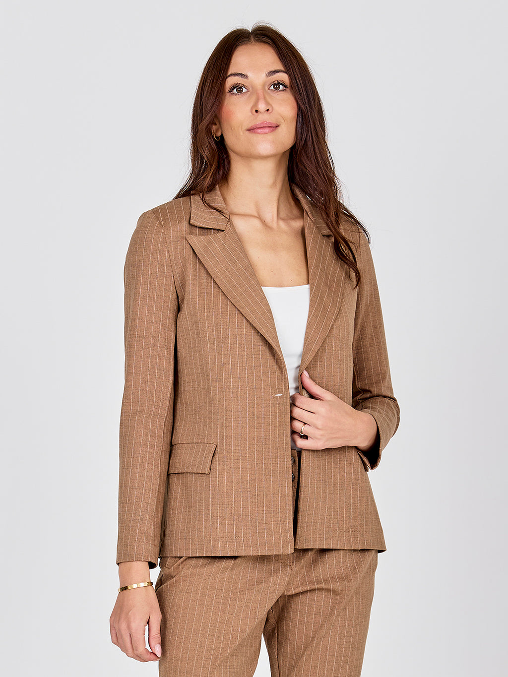Heben Sie Ihren Alltagslook mit diesem schlanken Blazer auf, der klassische Details mit einem modernen Schnitt kombiniert. Er verfügt über eine einzelne Knopfverschluss vorne, spitz zulaufende Revers und zwei Klappentaschen vorne, die den eleganten Ausdruck vervollständigen. Das dezente, vertikale Muster verleiht dem Blazer eine raffinierte Note, und die leicht strukturierte Qualität sorgt für Komfort.