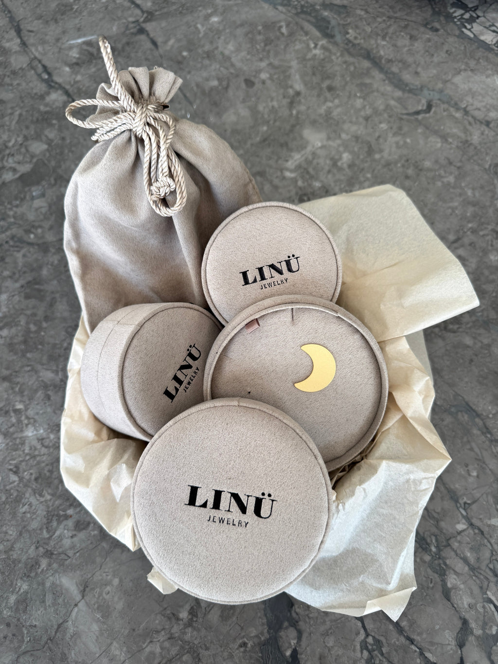 Der Schmuck wird in einem weichen Stoffbeutel und drei runden Schachteln geliefert - bereit, sich selbst oder eine geliebte Person jeden Sonntag im Advent zu verwöhnen.