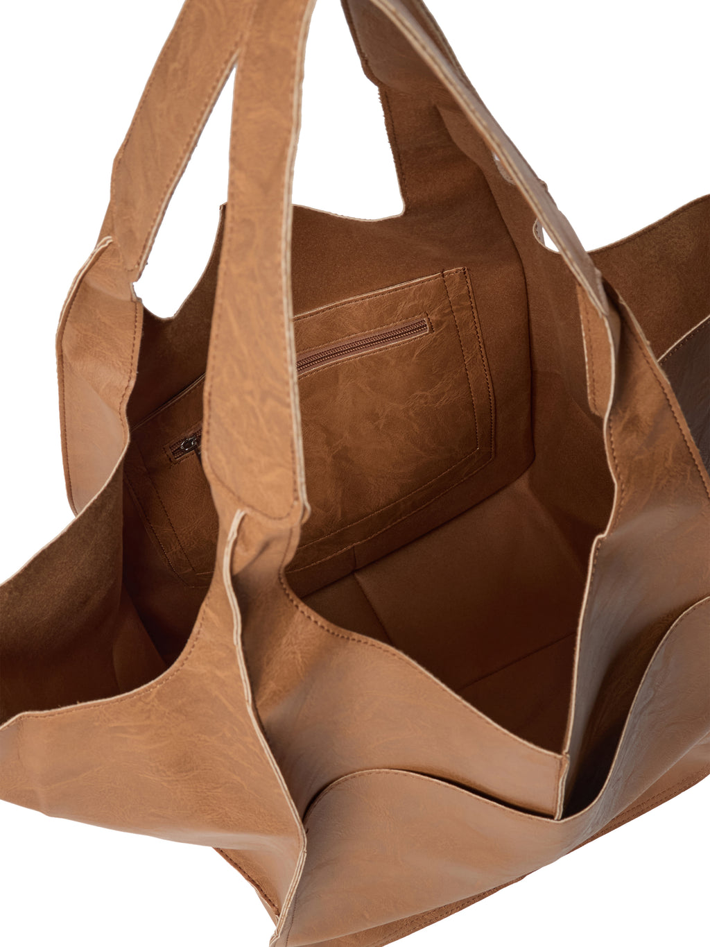 Einfach und geräumig - diese Tasche ist eine vielseitige Wahl sowohl für den täglichen Gebrauch als auch für das Wochenende. Sie besteht aus einem weichen und flexiblen Material, das einen entspannten Ausdruck verleiht, während die breiten Träger es bequem machen, über die Schulter getragen zu werden. Das schlichte Design der Tasche mit sichtbaren Nähten und ohne Verschluss macht sie einfach zu verwenden und schnell zu packen.