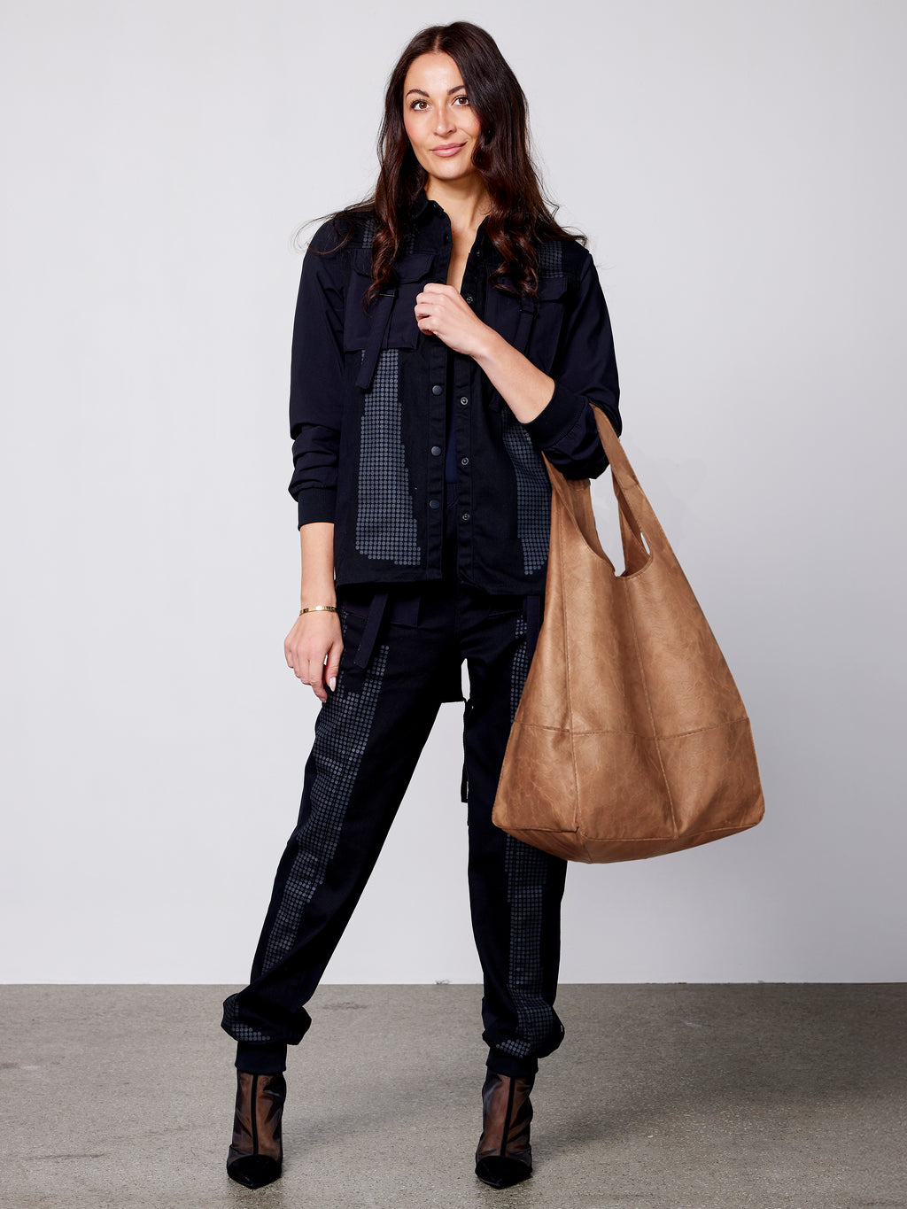 Kombinieren Sie die Tasche mit einer langen Strickjacke und Sneakers für einen entspannten und funktionalen Look.