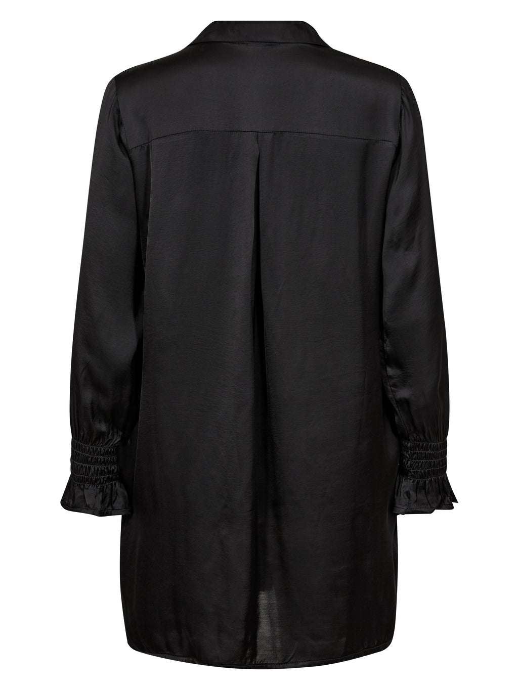 Diese Tunika ist die perfekte Kombination aus Komfort und Stil. Hergestellt aus einer glänzenden Viskose, die sie zu einem luxuriösen Style für jedes Outfit macht. Die Tunika hat eine lockere Silhouette, mit femininem V-Ausschnitt, klassischem Hemdkragen und langen Ärmeln mit feinem Smok-Detail. Verleihen Sie Ihrem Outfit mit dieser Tunika einen Hauch von Glamour – tragen Sie sie zu einer Alltagshose oder Leggings.