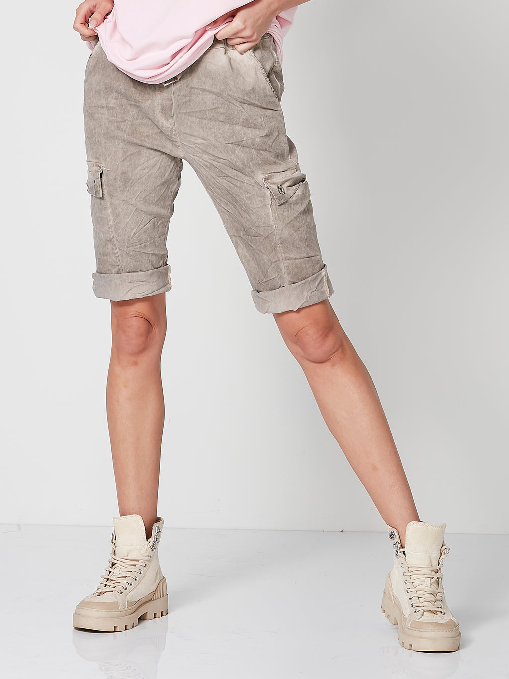 Coole Shorts in schöner Cold-Dye-Optik aus einer bequemen Viskosequalität mit viel Stretch. Die Shorts hat einen elastischen Bund mit Bändern und zwei große Taschen mit dekorativen Knöpfen an den Oberschenkeln. Stylen Sie die Shorts entweder mit der kurzärmeligen ODELINE-Bluse für ein feminines und modernes Outfit oder kombinieren Sie sie mit dem OAKLEE-T-Shirt für einen trendigen und lässigen Sommerlook.