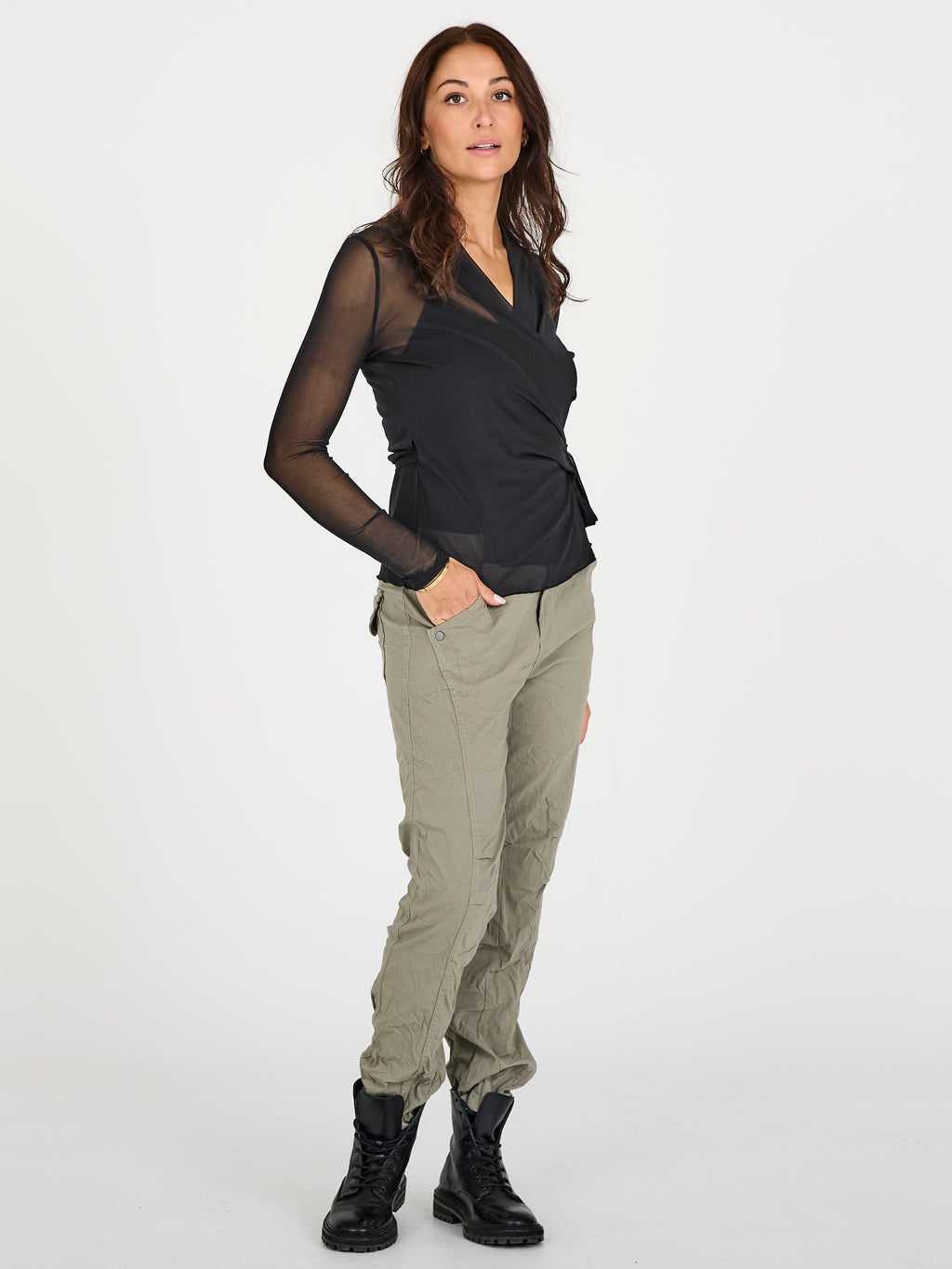 Geben Sie Ihrem Outfit mit diesen Hosen, die praktische Details mit einer locker sitzenden Passform kombinieren, eine moderne Note. Sie verfügen über gerade Beine, markante Nähte und Klappentaschen mit Knöpfen auf der Rückseite, die einen coolen, funktionalen Ausdruck verleihen. Die leicht gewaschene Oberfläche verleiht dem Stoff Charakter, während Gürtelschlaufen und schräge Taschen sie für den täglichen Gebrauch geeignet machen.
