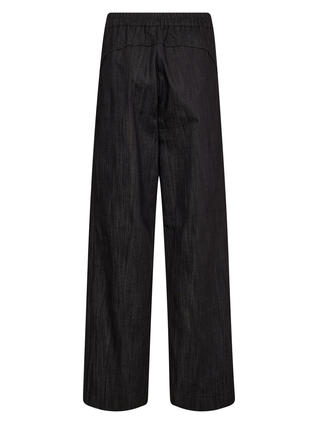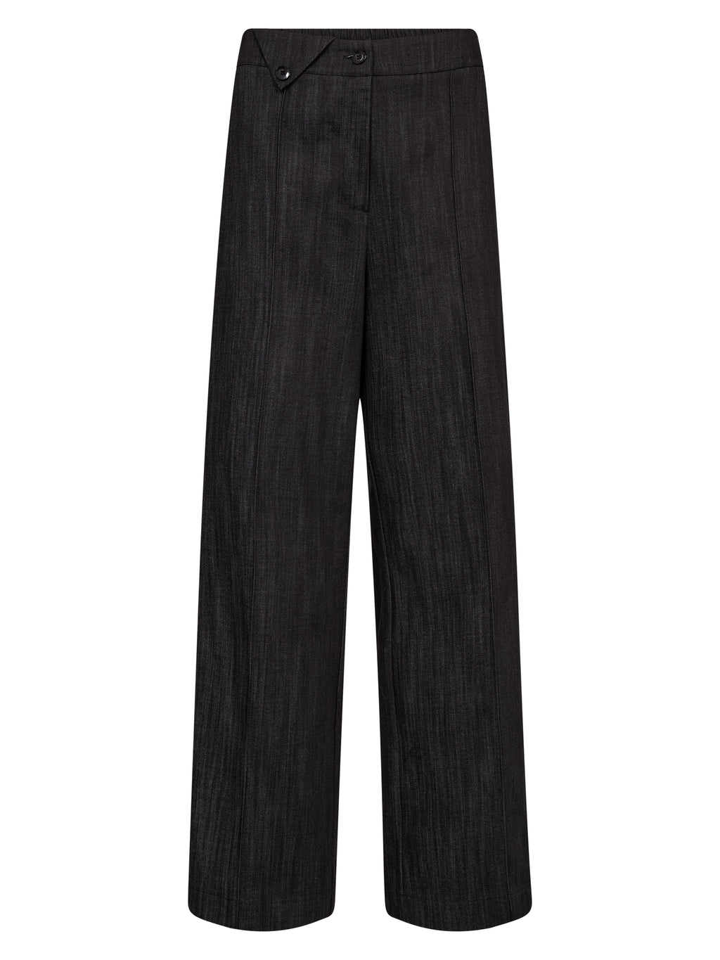 Diese Hose hat einen klassischen, sauberen Look mit weiten, geraden Beinen und einer glatten, strukturierten Qualität, die sich schön um die Beine legt. Die Taille wird mit einem Knopf und einem Reißverschluss geschlossen, und das Design ist schlicht und vielseitig - perfekt für lässige und formellere Looks.