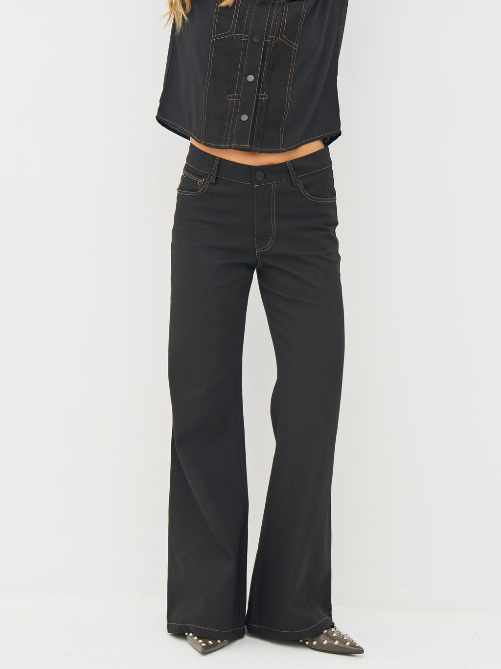 Diese Jeanshose hat einen zeitlosen Look mit weiten Beinen und sichtbaren Kontrastnähten, die einen modernen Touch verleihen. Die Passform ist klassisch mit fünf Taschen, Gürtelschlaufen und einem Frontreißverschluss mit Knopf. Die weiten Beine schaffen eine wunderschöne Silhouette und bieten viel Bewegungsfreiheit für den täglichen Gebrauch.
