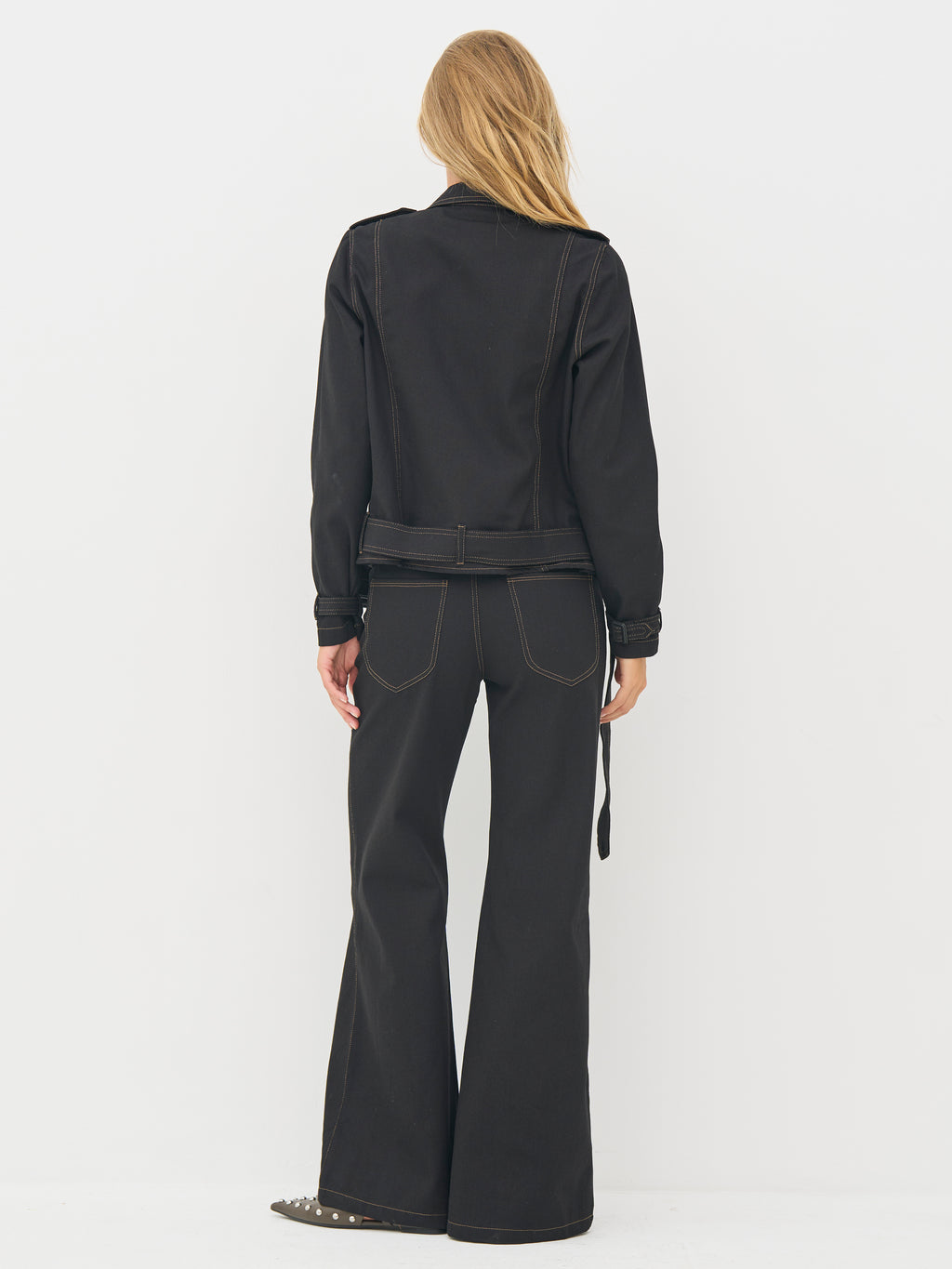 Verleihen Sie mit dieser Jeansjacke im Biker-inspirierten Design der Garderobe eine besondere Note. Sie verfügt über einen asymmetrischen Reißverschluss, einen Gürtel in der Taille und aufwendige Nähte, die Struktur und einen coolen Ausdruck verleihen. Schulterträger und verstellbare Träger an den Ärmeln vervollständigen den lässigen Look, während das Material Strapazierfähigkeit und Tragekomfort bietet.