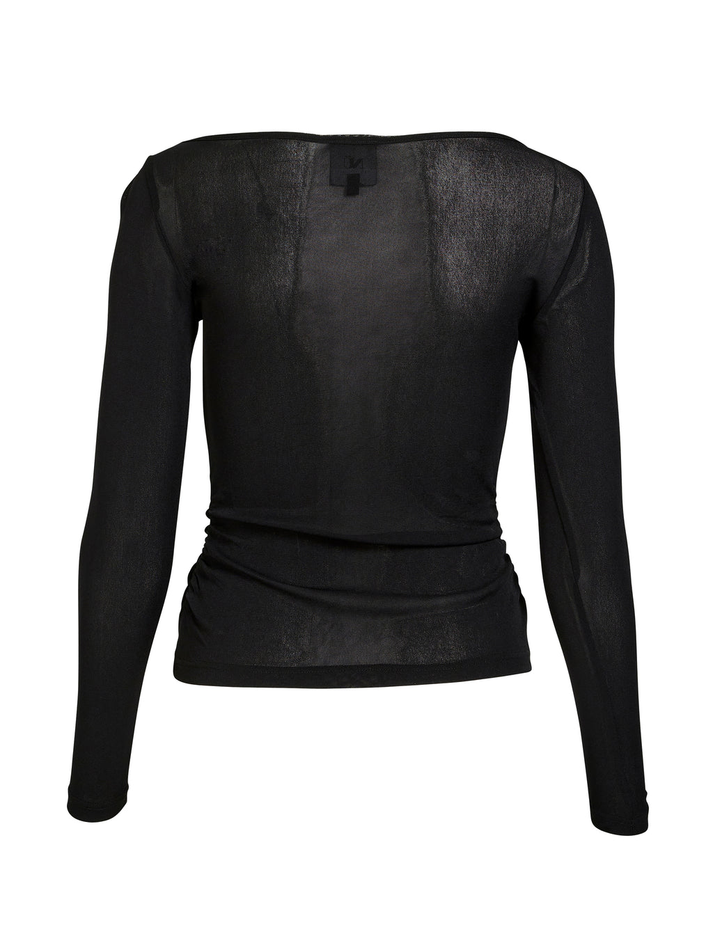 Kreieren Sie einen eleganten und einfachen Ausdruck mit diesem langärmeligen T-Shirt aus einem leichten, transparenten Material. Der körperbetonte Schnitt betont die Figur, während die zarten Falten an den Seiten subtile Details und Bewegung hinzufügen. Der bootförmige Ausschnitt verleiht dem T-Shirt eine feminine Note und erleichtert das Styling sowohl für tagsüber als auch für abends.