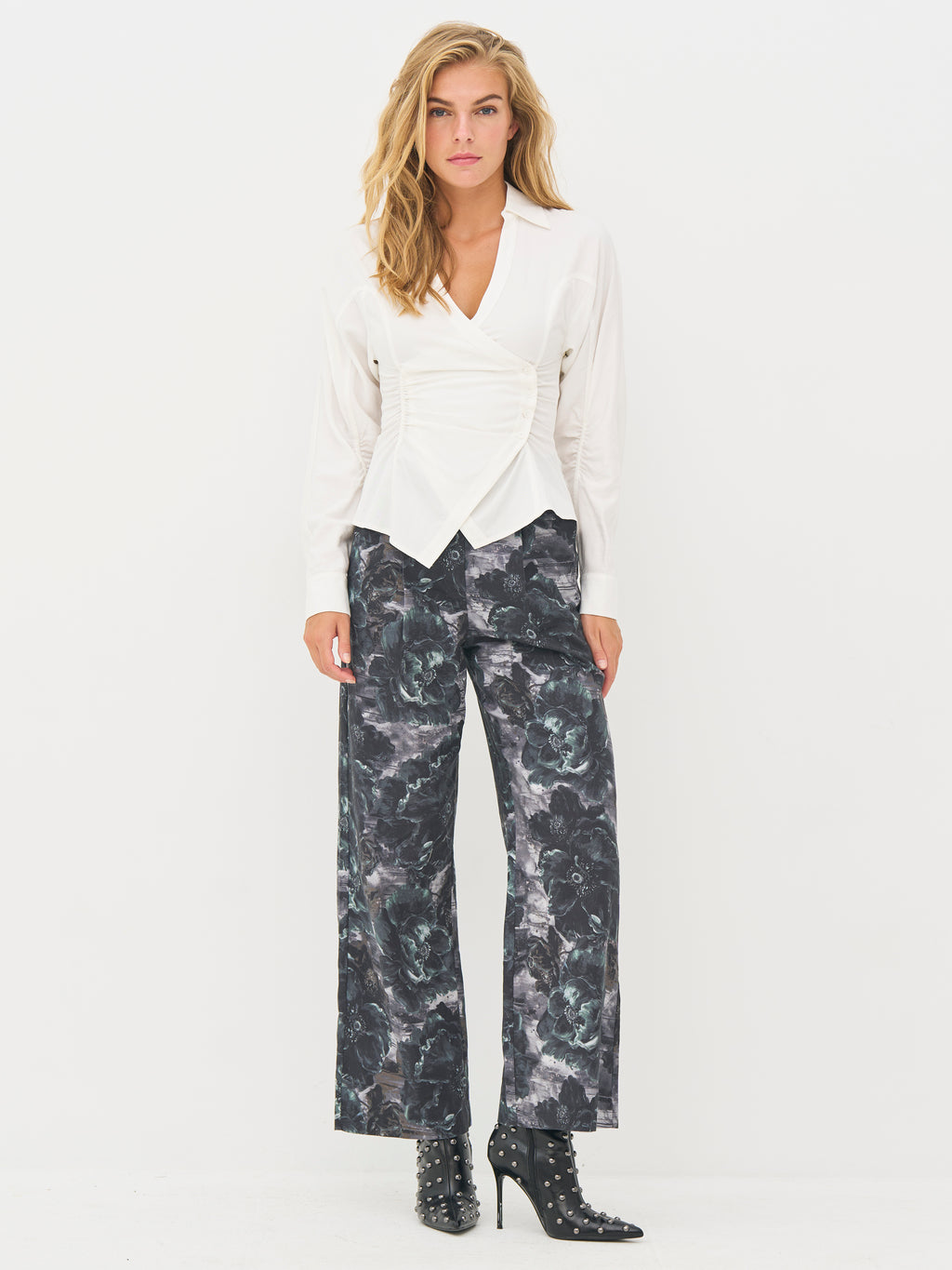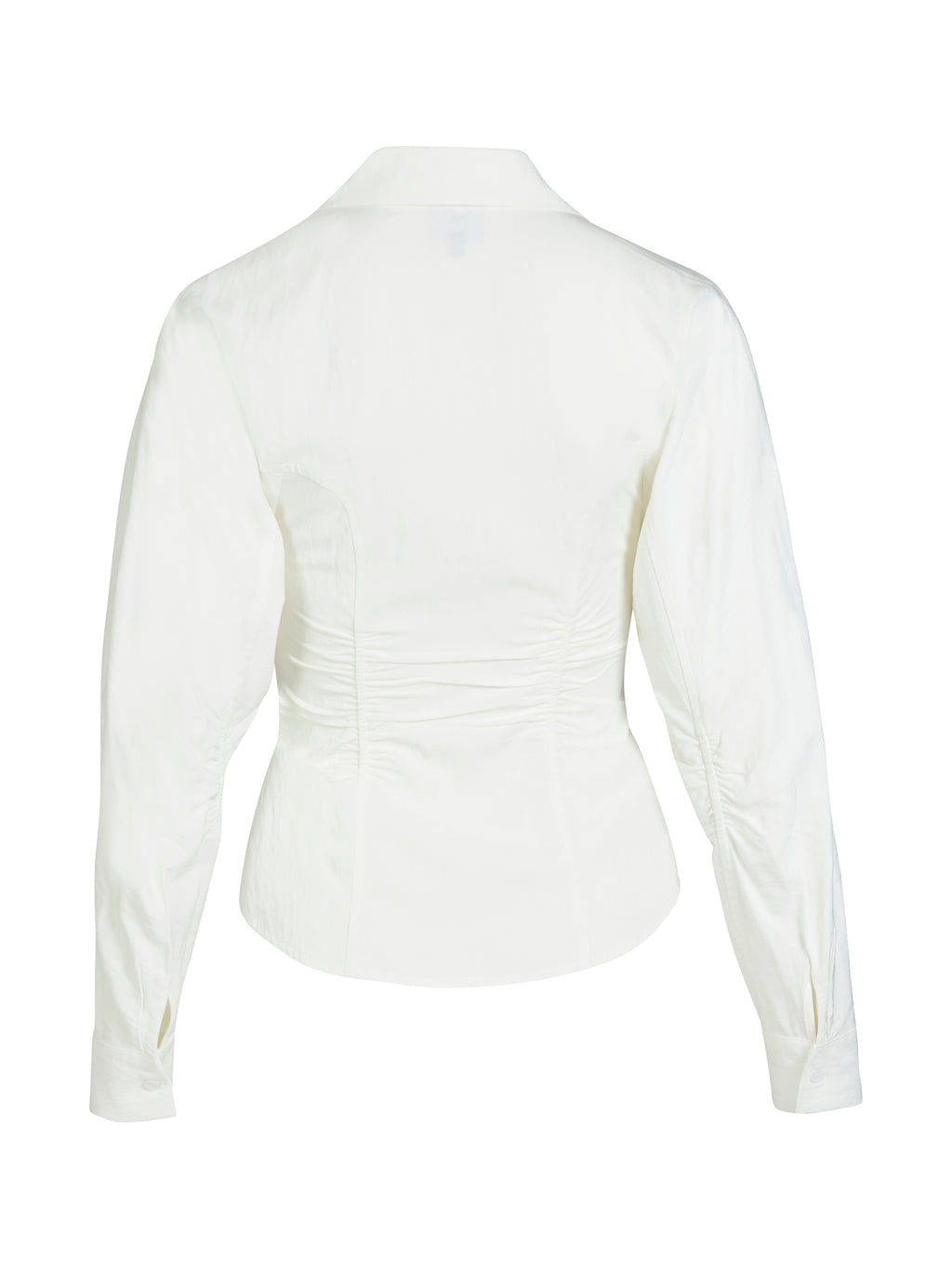 Betonen Sie Ihre Taille mit dieser eleganten Bluse mit einem Wickel-Effekt und einer taillierten Passform. Die feinen plissierten Details an den Seiten und Ärmeln verleihen Bewegung und Struktur, während das spitz zulaufende Vorderteil eine raffinierte Silhouette schafft. Der Kragen und der Knopfverschluss unterstreichen den klassischen Look mit einer modernen Note.