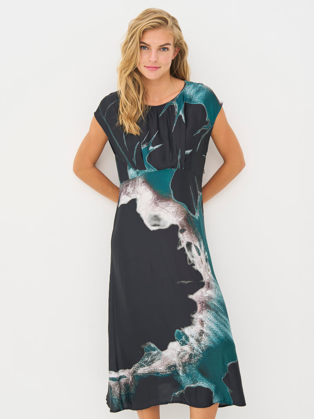 Kombinieren Sie das Kleid mit einem leichten Strick und flachen Sandalen für einen bequemen Alltagslook oder fügen Sie Absätze und Schmuck für den Abend hinzu.