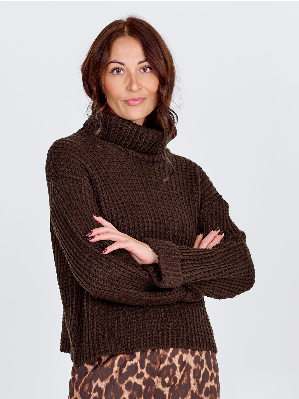 Dieser Strick strahlt mit seinem Rollkragen und weicher Struktur eine lässige Eleganz aus. Das einfache Design macht es leicht zu stylen, und die ruhige Ausstrahlung verleiht ihm eine mühelose und persönliche Note. Der Rollkragen bietet sowohl Wärme als auch Charakter – perfekt für kühle Tage, an denen Komfort und Stil Hand in Hand gehen.