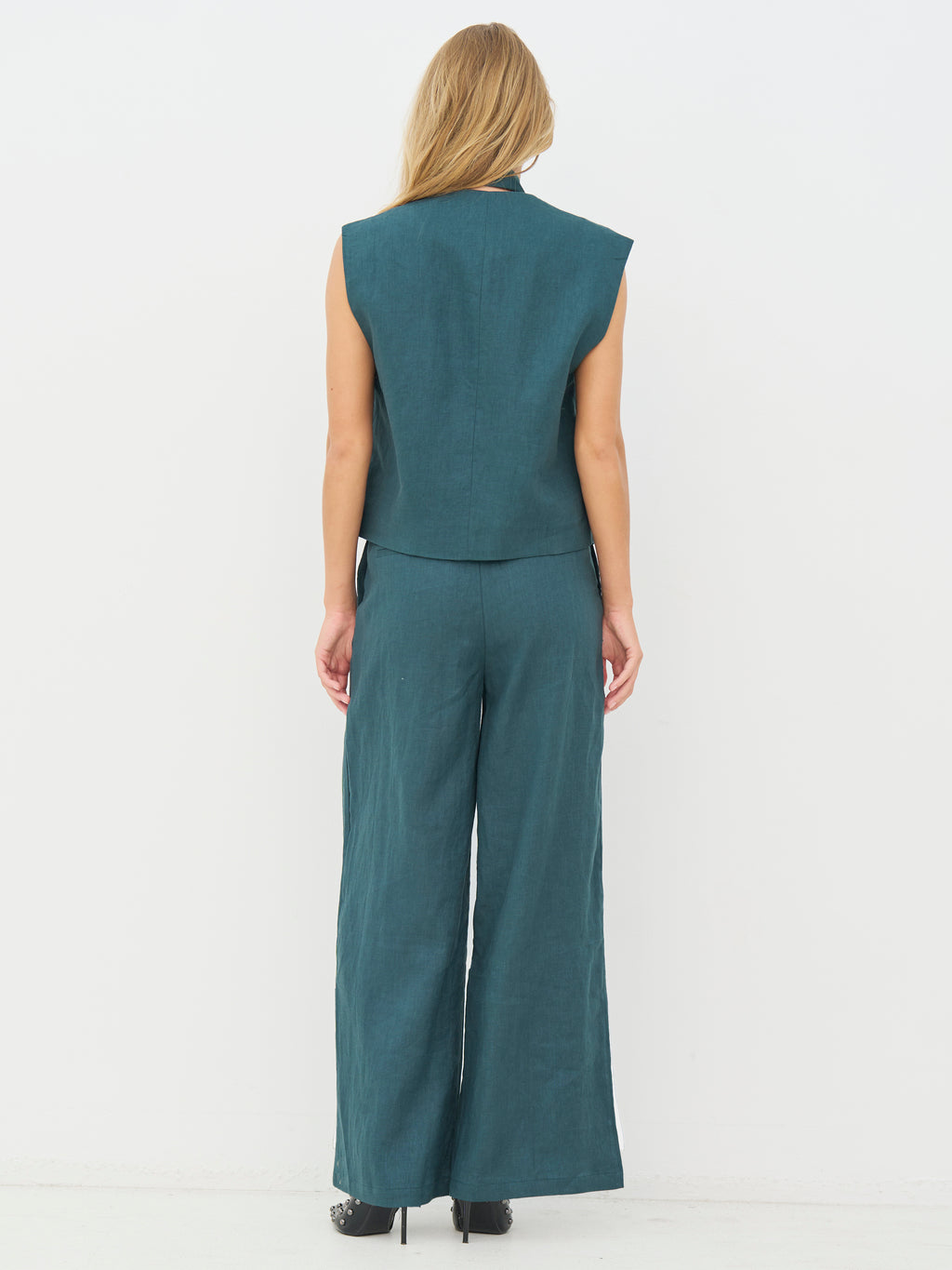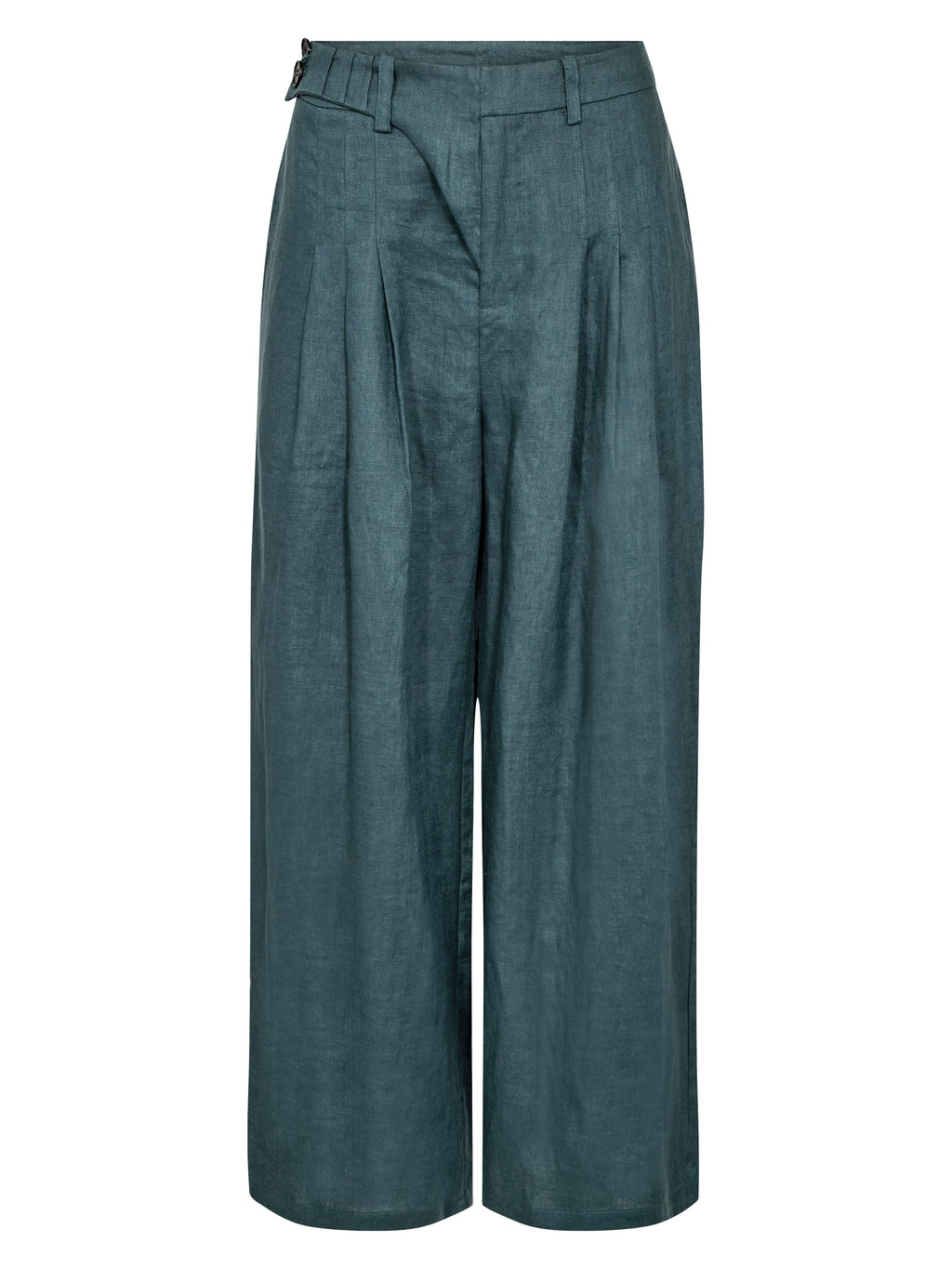 Diese Hose besteht zu 100% aus Leinen und hat eine gerade Passform mit weiten Beinen, die einen leichten und eleganten Fall erzeugen. Vorne haben sie feine Falten, die Form geben und der Hose etwas zusätzliche Weite verleihen, während sie hinten schlichter im Aussehen sind. Die Leinenqualität macht die Hose angenehm zu tragen und eignet sich sowohl für warme Tage als auch für anspruchsvollere Looks.