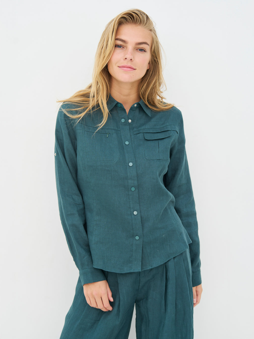 Dieses Hemd hat einen schlichten und stilvollen Look mit klassischem Kragen und durchgehender Knopfleiste vorne. Die Brusttaschen fügen ein dezentes, funktionales Element hinzu, während die Rückseite schlichter ist und schön entlang des Rückens fällt. Die Passform ist gerade und bequem, so dass das Hemd sowohl geschlossen als auch offen leicht zu tragen ist. Kombinieren Sie es mit der passenden Hose für einen durchdachten Look oder tragen Sie es mit Jeans für den Alltag.