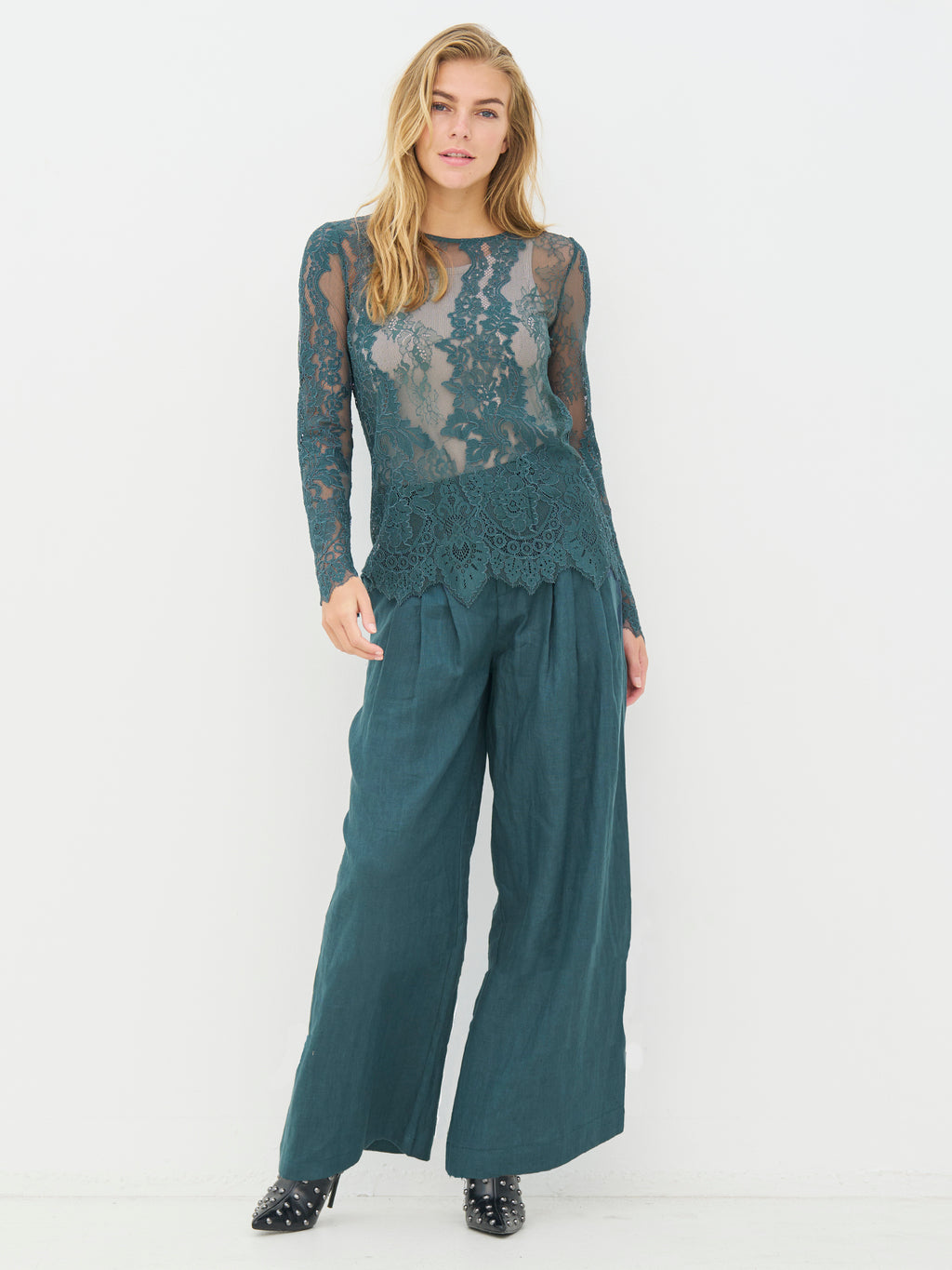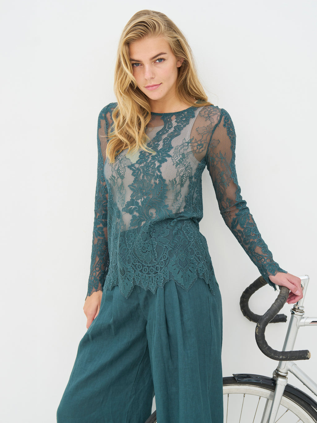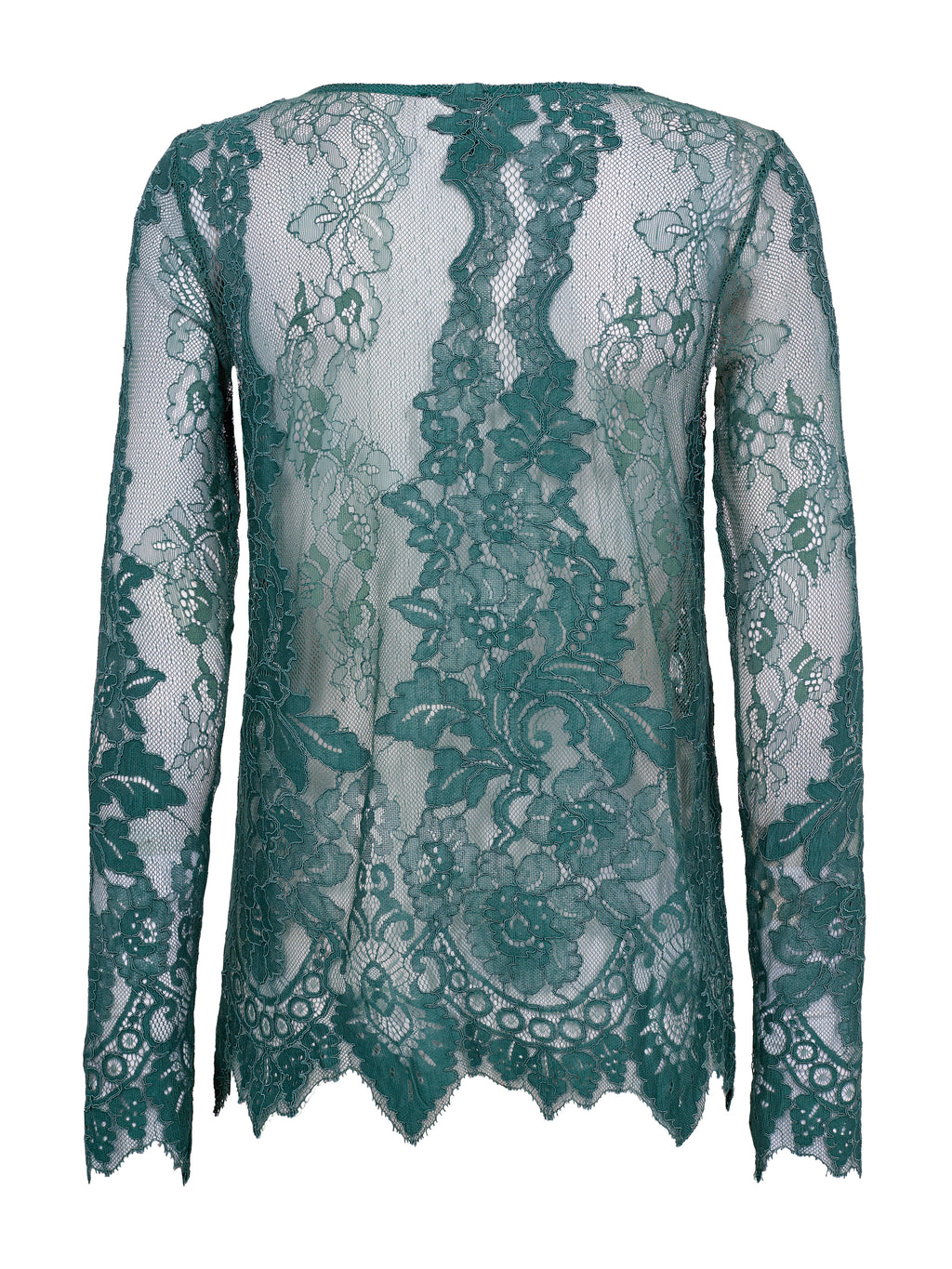 Diese Spitzenbluse hat einen femininen und eleganten Look mit transparenter Spitze und einem klaren Blumenmuster. Das leichte Material verleiht dem Look Tiefe und eignet sich wunderbar als Schicht über einem einfachen Oberteil. Die Ränder sind mit einer leichten Wellenkante veredelt, wodurch ein ordentlicher und hochwertiger Abschluss entsteht. Die Bluse ist angenehm zu tragen und kann sowohl lässig als auch zu festlichen Anlässen gestylt werden - allein oder unter einem Blazer oder Strick.