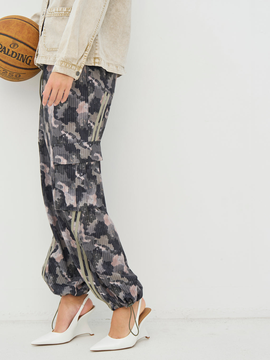 Diese Hose hat eine lockere Passform mit Volumen in den Beinen und elastischem Bund sowie einer Kordel im Taillenbereich, die eine einfache Anpassung ermöglicht. Die großen Cargotaschen an den Seiten verleihen einen lässigen Ausdruck, während das Kordeldetail an den Knöcheln eine individuelle Anpassung ermöglicht. Die Vorderseite ist schlicht, und die Rückseite folgt der gleichen ruhigen Linie. Kombinieren Sie die Hose mit einem einfachen Oberteil oder Hemd und gegebenenfalls dem passenden Oberteil für einen entspannten, aber durchdachten Alltagslook.