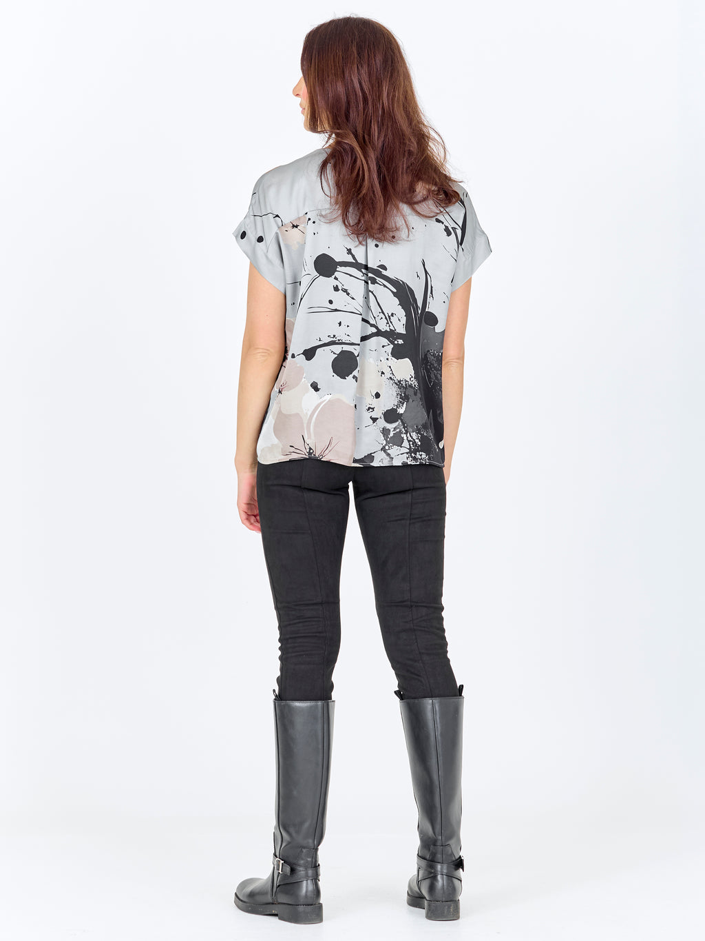 Diese Bluse hat einen einfachen Schnitt mit V-Ausschnitt und kurzen Ärmeln, was einen entspannten und vielseitigen Look verleiht. Das Muster ist sowohl vorne als auch hinten und verleiht Charakter und Ecken. Die Passform ist gerade, sodass die Bluse schön auf dem Körper sitzt und sowohl zu Hosen als auch zu Shorts leicht zu stylen ist. Tragen Sie sie alleine für den täglichen Gebrauch oder mit einer leichten Jacke für einen vollständigen Look.
