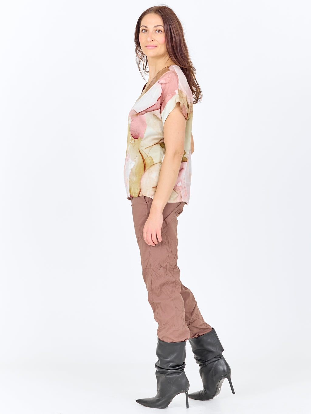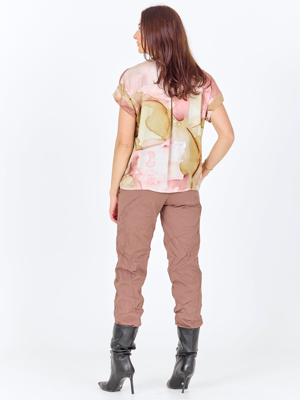 Diese Bluse hat einen einfachen Schnitt mit V-Ausschnitt und kurzen Ärmeln, was einen entspannten und vielseitigen Look verleiht. Das Muster ist sowohl vorne als auch hinten und verleiht Charakter und Ecken. Die Passform ist gerade, sodass die Bluse schön auf dem Körper sitzt und sowohl zu Hosen als auch zu Shorts leicht zu stylen ist. Tragen Sie sie alleine für den täglichen Gebrauch oder mit einer leichten Jacke für einen vollständigen Look.