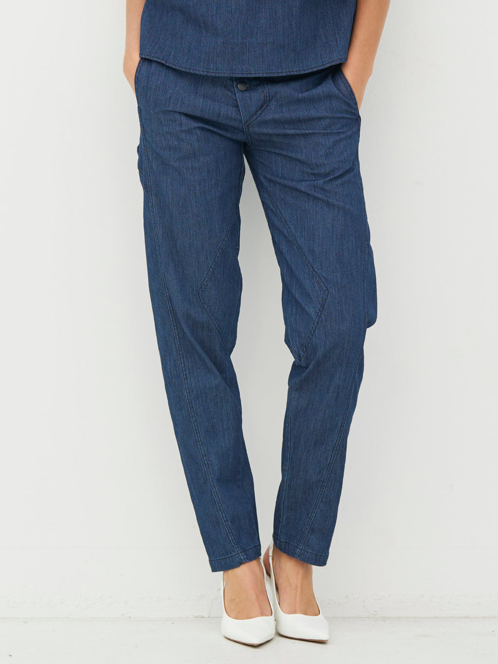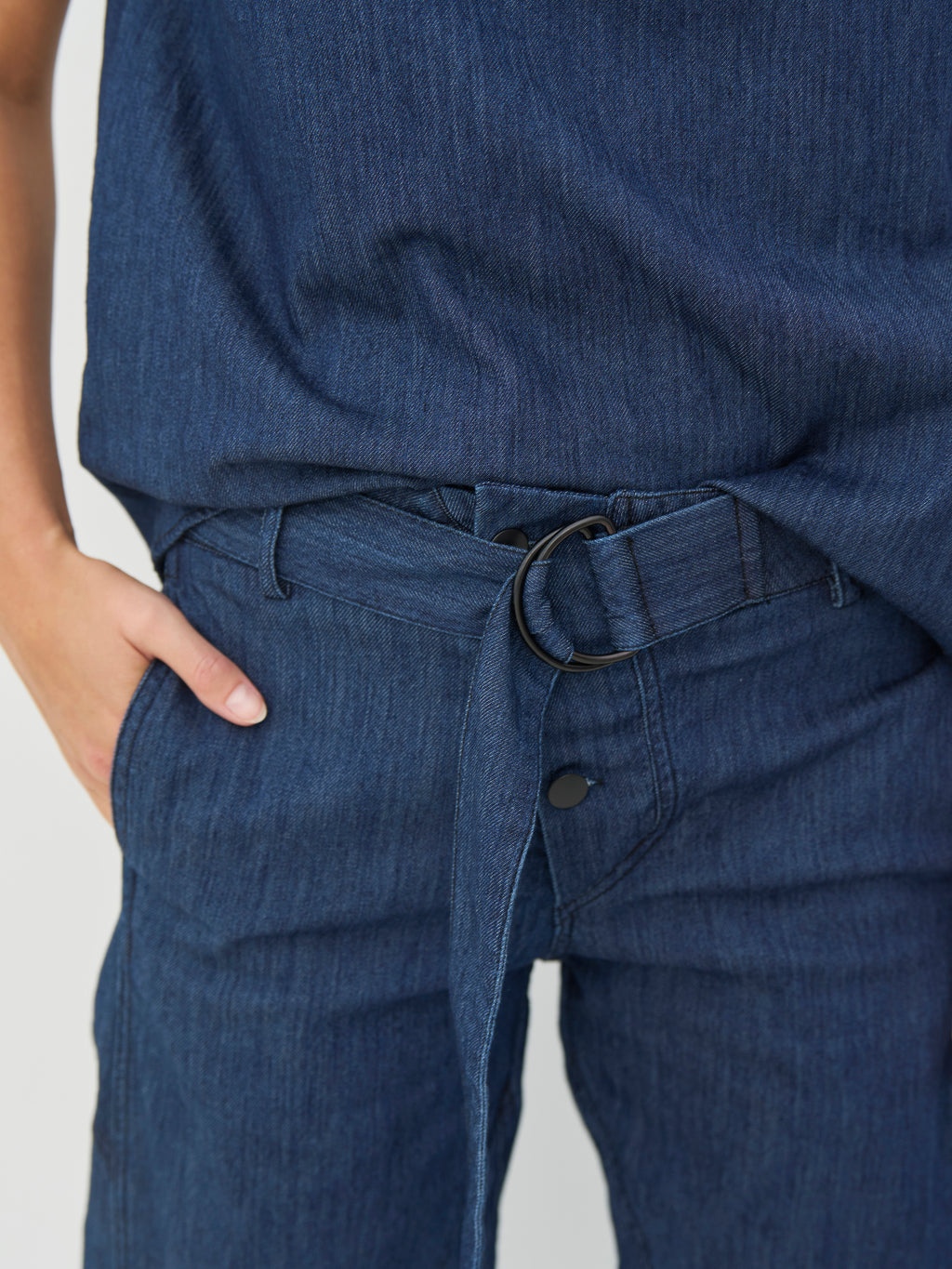 Diese Denim-Hosen haben eine bequeme Passform mit viel Stretch, was sie den ganzen Tag über leicht zu tragen macht. Der integrierte Gürtel erfüllt sowohl einen praktischen Zweck als auch als cooles Detail, das den Hosen etwas zusätzlichen Charakter verleiht. Ein lässiger Stil, der sich leicht mit weichen Strickwaren, Hemden und T-Shirts kombinieren lässt.
