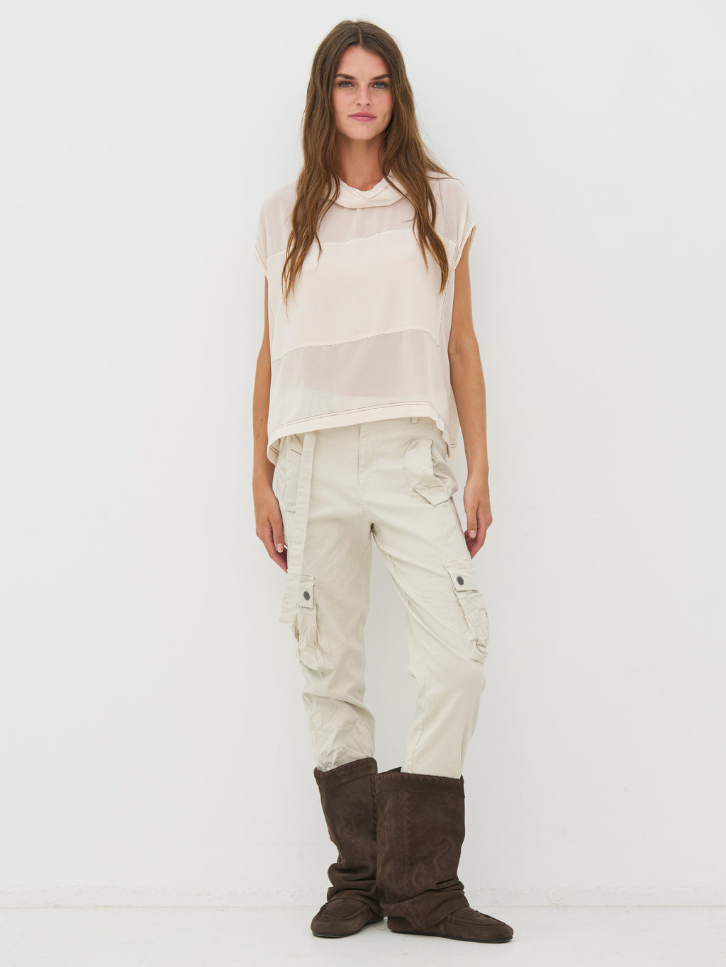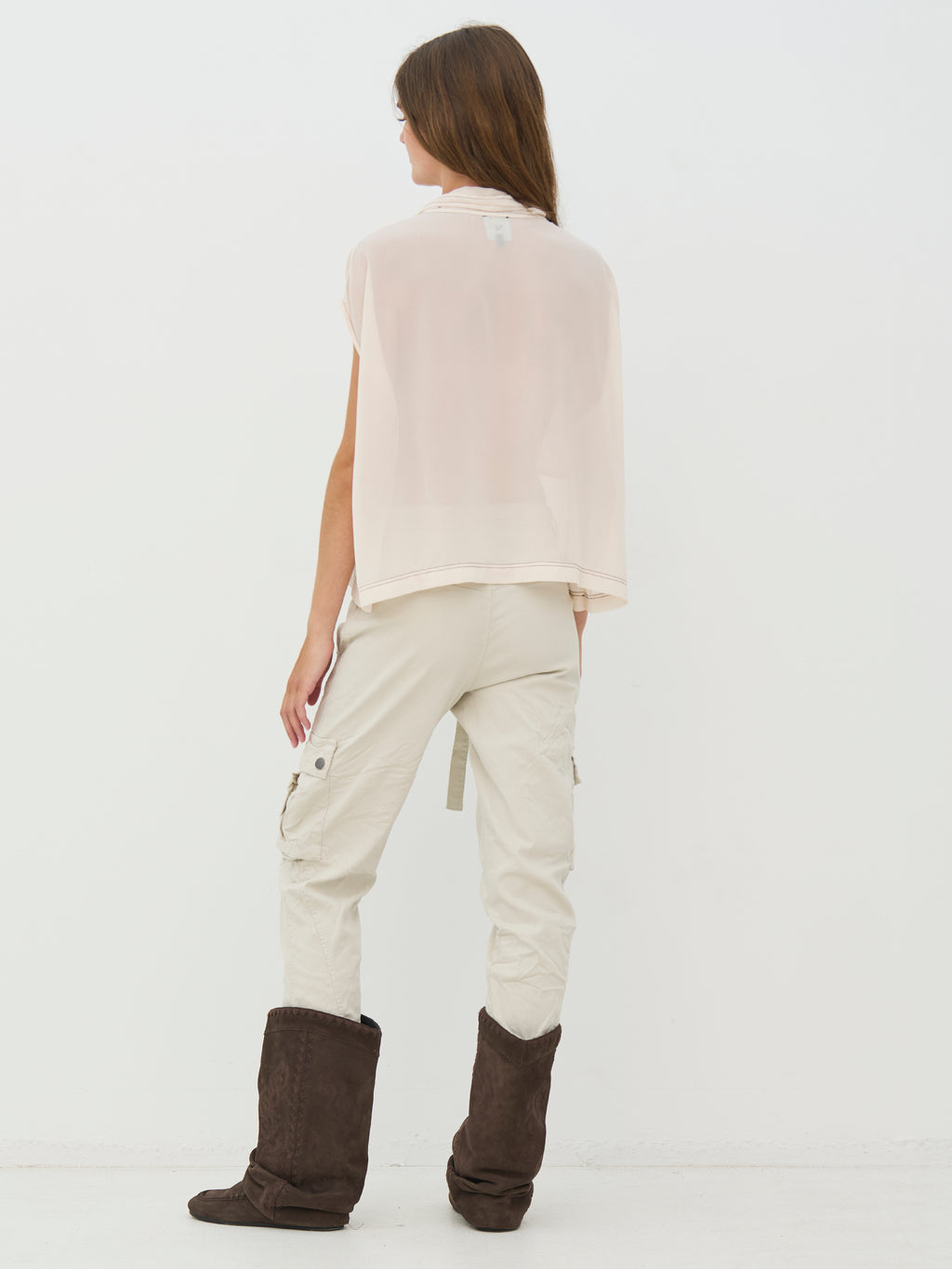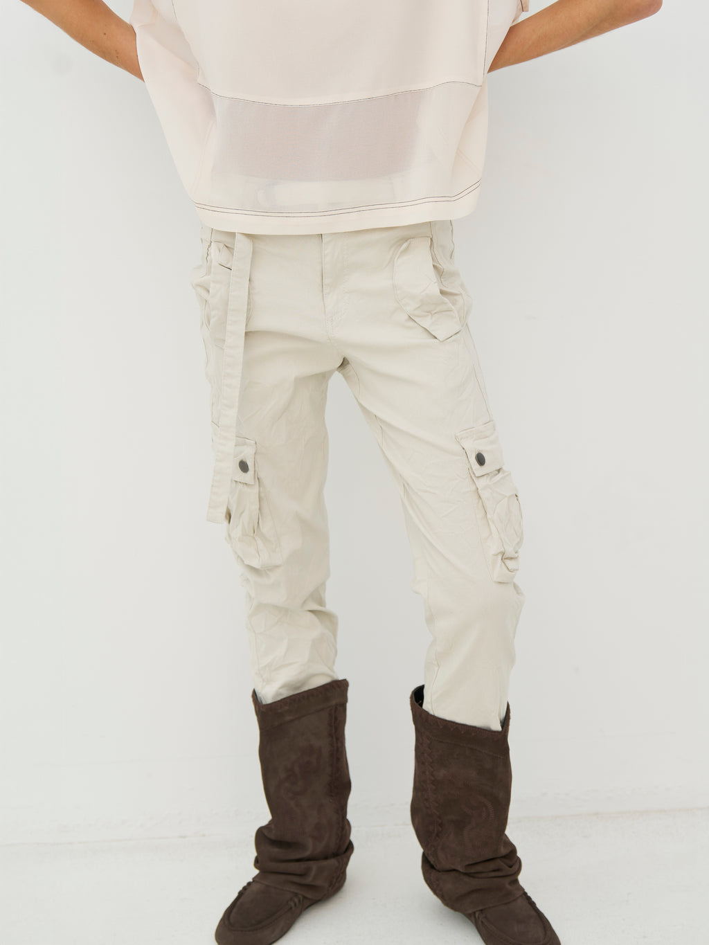 Diese Hose hat einen markanten und modernen Ausdruck mit einer geraden Passform und dekorativen Taschen, die dem Look das gewisse Etwas verleihen. Die Taille ist mit einem Gürtel und Schnalle versehen, was einen rauen, stilsicheren Dreh hinzufügt. Die Hose fällt schön entlang der Beine und ist einfach mit einem einfachen Top oder einem auffälligeren Hemd zu kombinieren.