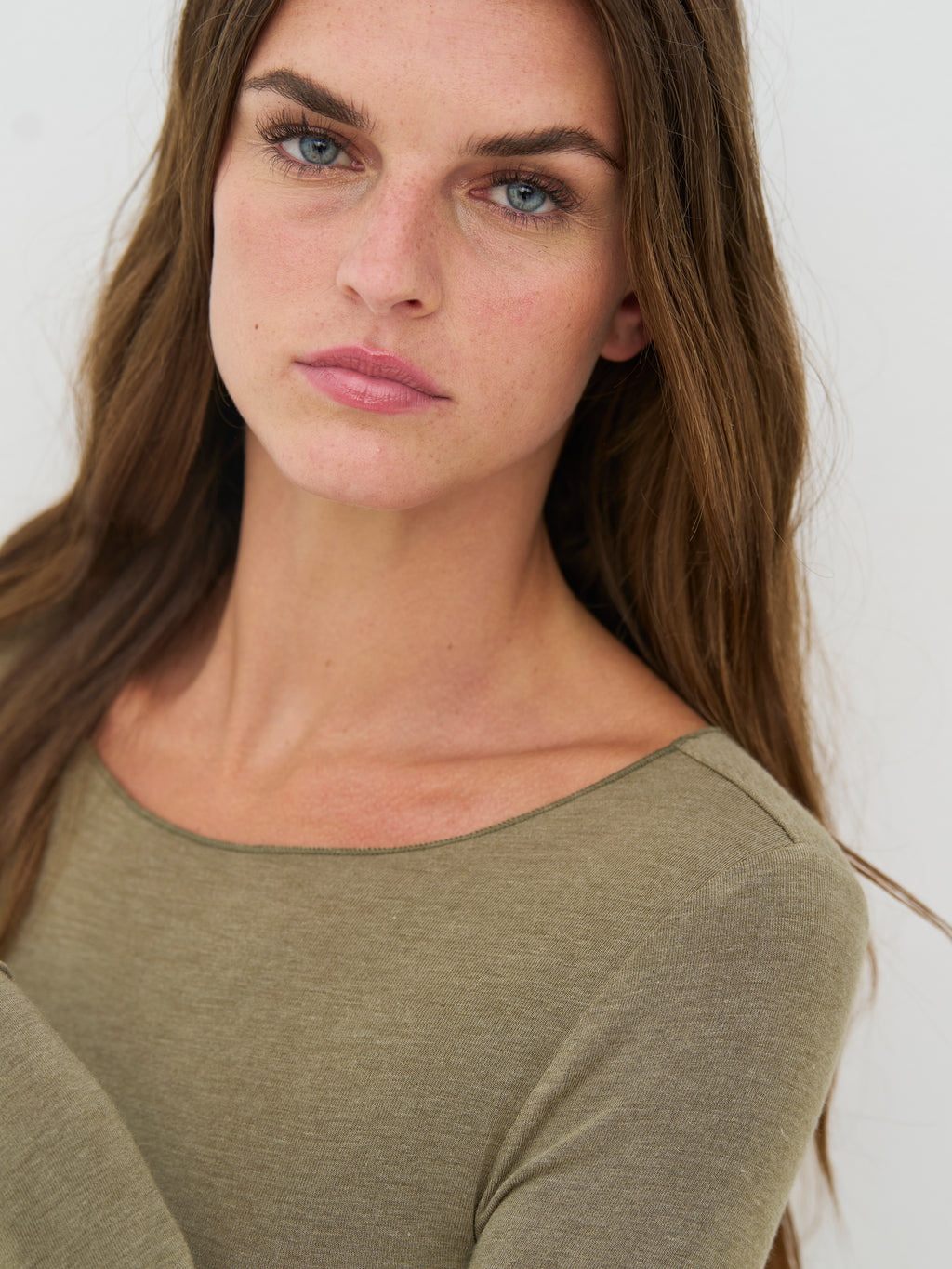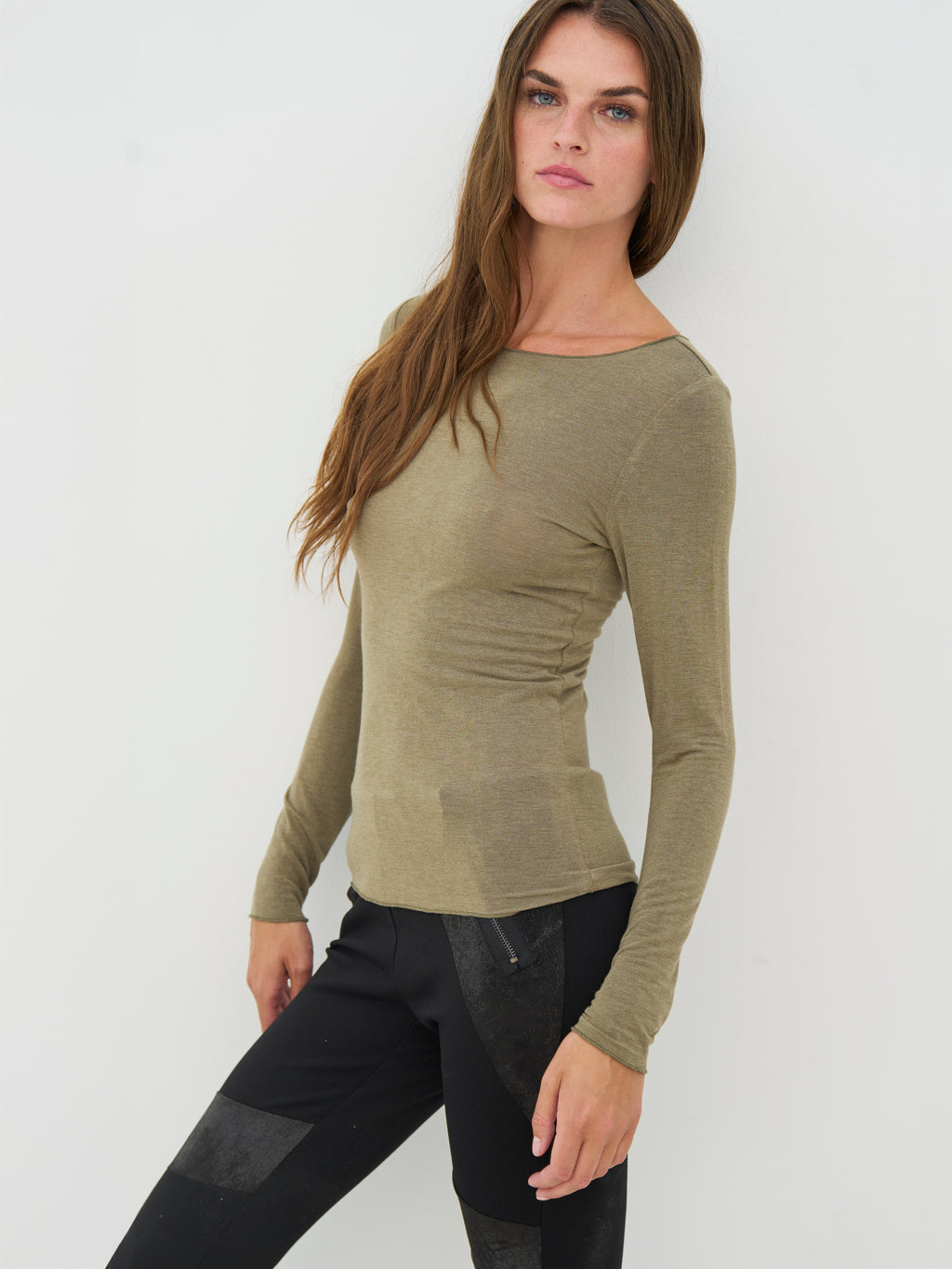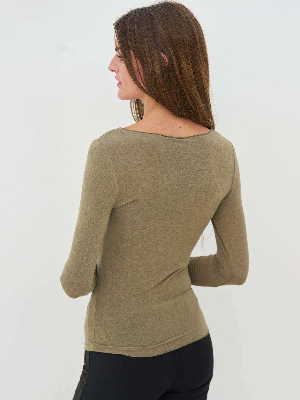 Diese Basic-Bluse hat ein einfaches und zeitloses Aussehen mit langen Ärmeln und einem runden Ausschnitt. Die Passform ist leicht tailliert und folgt dem Körper auf angenehme Weise. Die Vorderseite ist schlicht und ohne Details, während die Rückseite den gleichen einfachen Schnitt hat, der es ermöglicht, die Bluse immer wieder leicht zu tragen. Sie funktioniert sowohl allein als auch als Schicht unter Hemden, Strickwaren oder Jacken. Kombinieren Sie sie mit Hosen, Röcken oder unter einer offenen Strickjacke für einen ruhigen und vielseitigen Alltagslook.