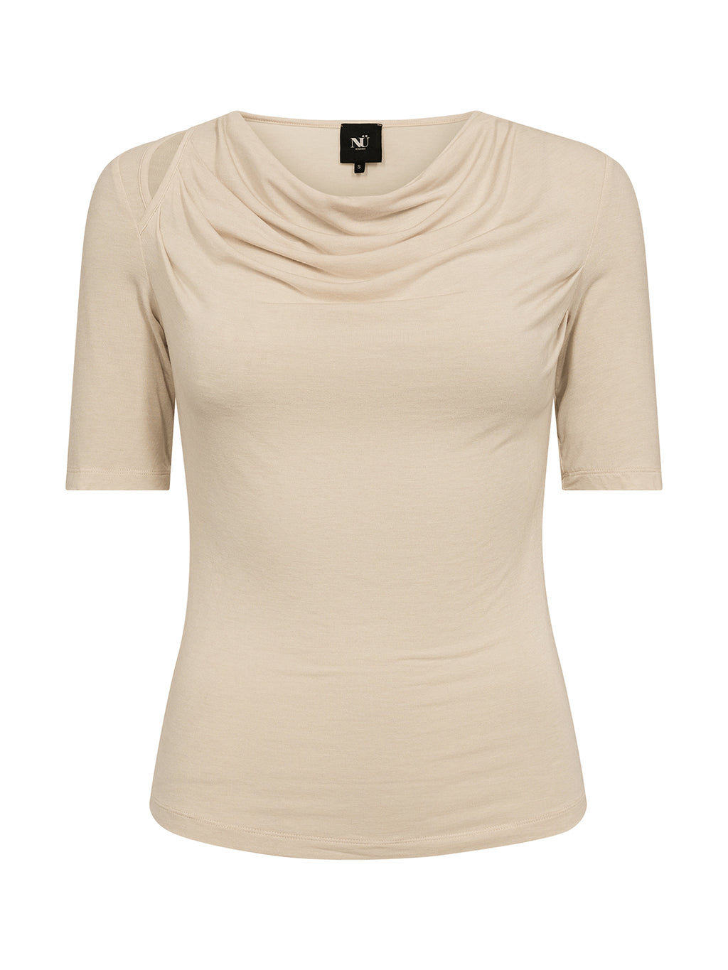 Dieses T-Shirt hat einen femininen und entspannten Look mit weichen Drapierungen am Ausschnitt, die natürlich fallen und etwas mehr Bewegung verleihen. Es hat kurze Ärmel und eine bequeme Passform, die den Körper ohne zu eng zu sein, folgt. Der Stoff ist leicht und weich auf der Haut, was es den ganzen Tag lang leicht zu tragen macht. Ein zuverlässiger Favorit, der sowohl für den Alltag als auch für elegantere Looks gut funktioniert - je nachdem, wie Sie ihn stylen.