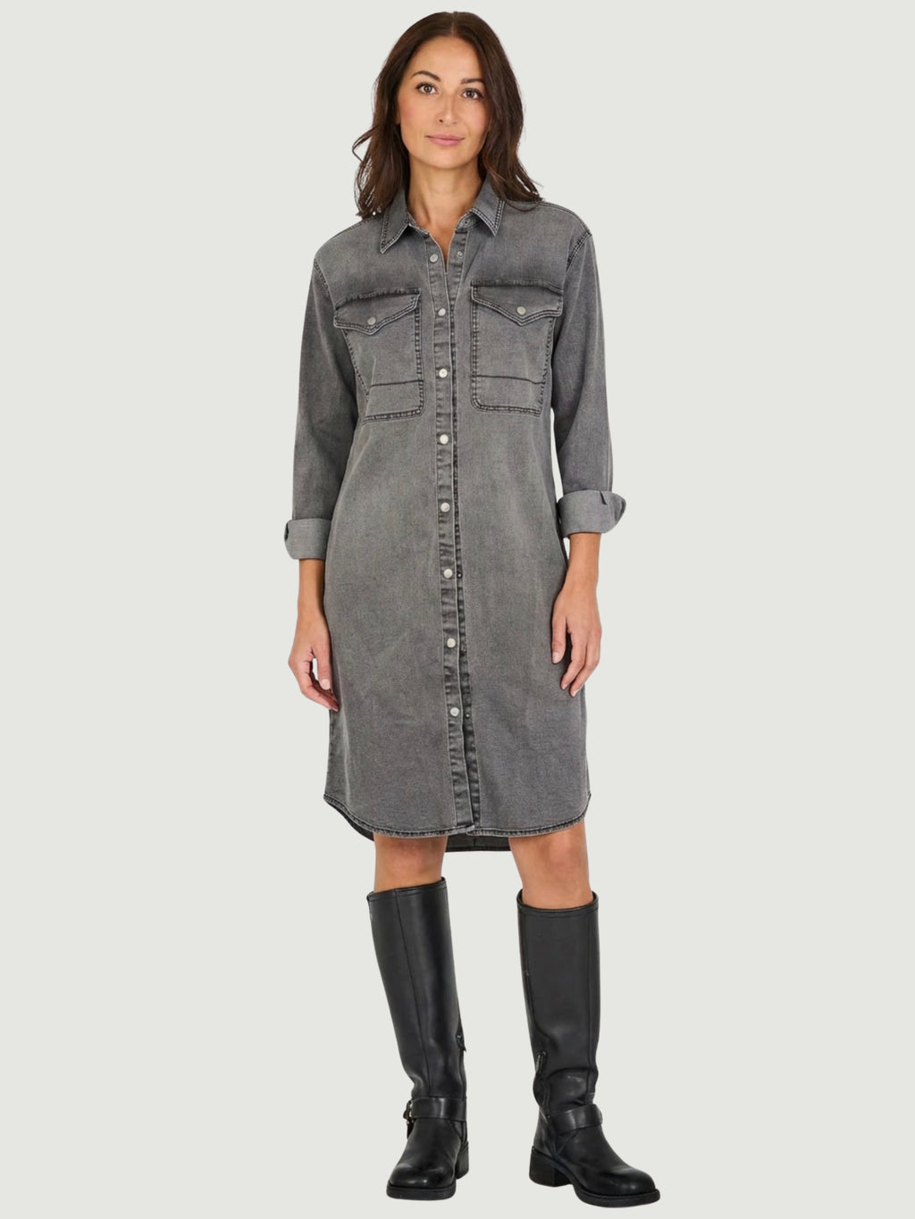 Unser langärmeliges Jeanskleid ist eine vielseitige Wahl, die sich leicht für verschiedene Anlässe stylen lässt. Kombinieren Sie das Kleid mit flachen Schuhen und einer Umhängetasche zu einem schlichten und ausgewogenen Look. Für besondere Anlässe können Sie das Kleid wiederum mit hohen Absätzen und einer eleganten Clutch zu einem raffinierten, aber zugleich lässigen Look aufwerten.