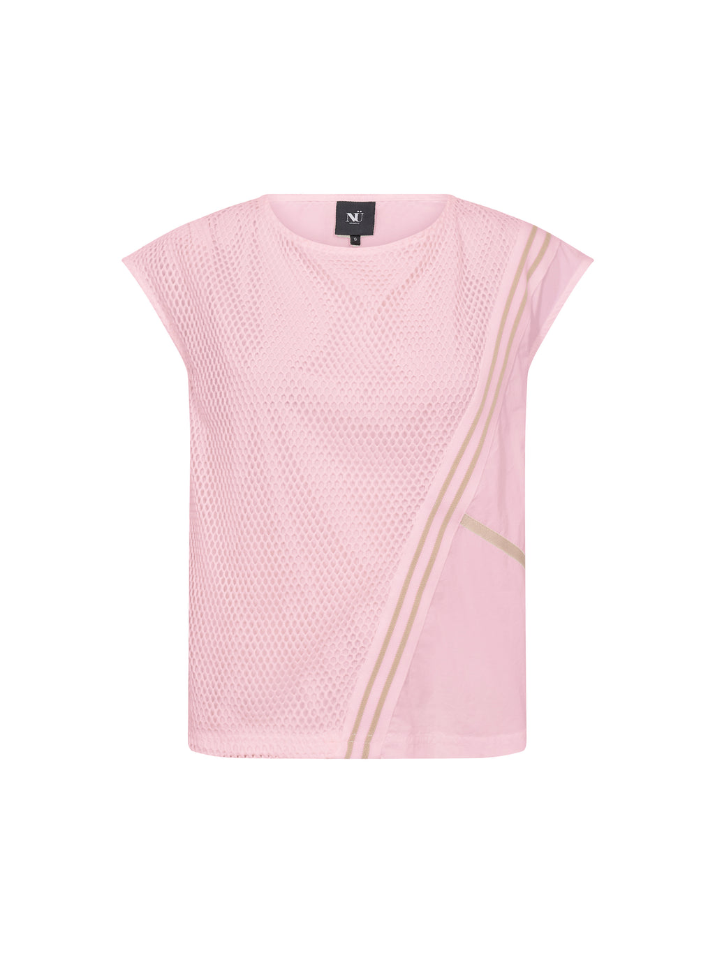 Dieses Oberteil hat einen leichten und luftigen Look mit einer strukturierten Qualität, die ihm einen sportlichen Touch verleiht. Es ist mit einem Innenfutter gestaltet, das für ein bedecktes Aussehen sorgt, während der offene Ausdruck erhalten bleibt. Die diagonalen Streifen fügen ein dynamisches Detail hinzu, während die lockere Passform eine mühelose Silhouette bietet. Am Rücken setzt sich das Design mit dem gleichen Schichtungseffekt fort.